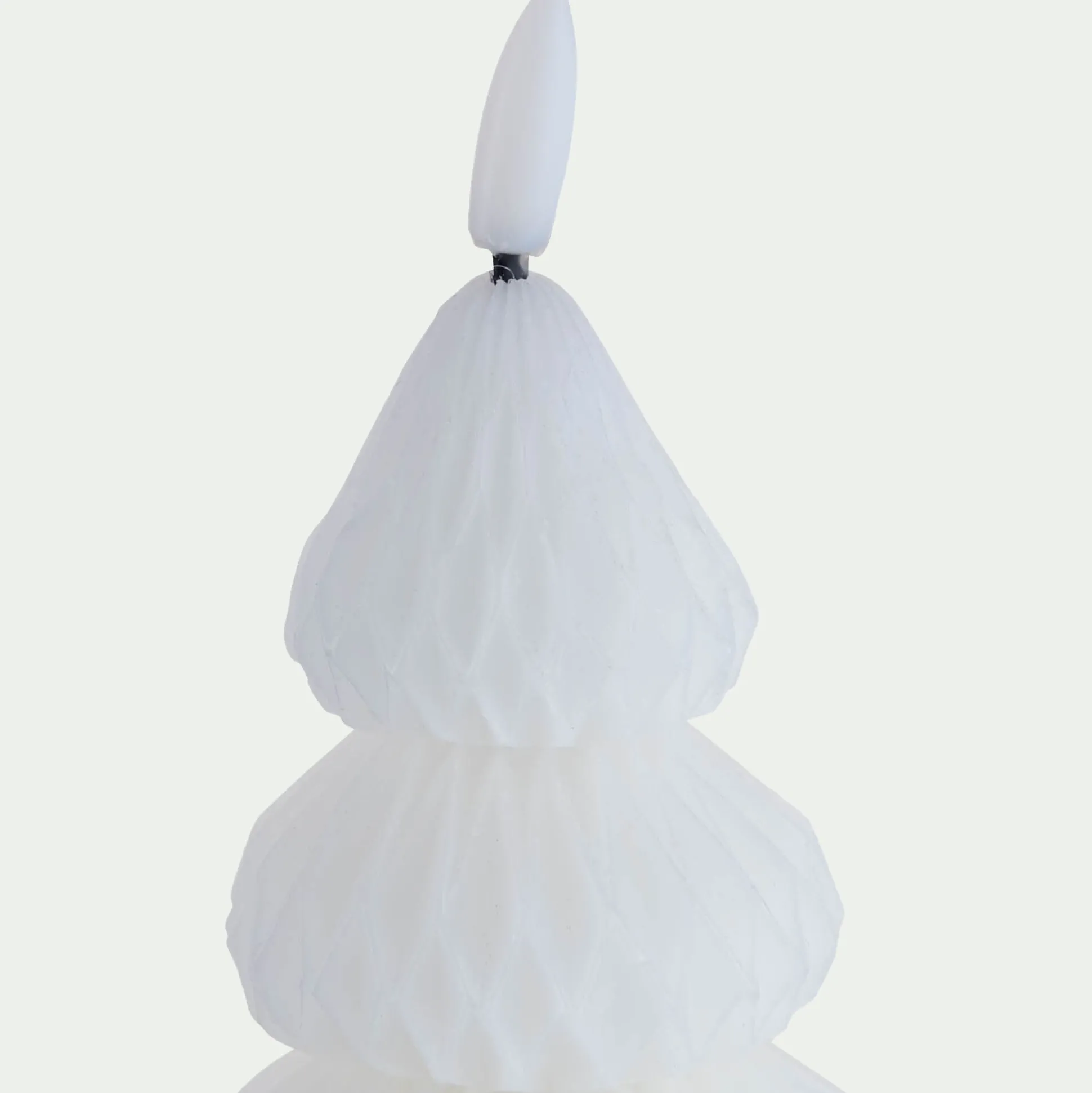 Pour une ambiance chaleureuse et sécurisée, optez pour cette bougie à LED. Sa forme de sapin en cire blanche apporte une touche d’élégance et de douceur à votre décoration de Noël. Grâce à sa technologie LED, elle reproduit l’éclat vacillant d’une vraie flamme sans les risques, parfaite pour les familles avec de jeunes enfants ou les animaux de compagnie. Disposez-la sur une étagère, une table de chevet ou en centre de table pour un effet lumineux et délicat. Elle diffuse une lumière tamisée qui rendra votre intérieur plus accueillant.