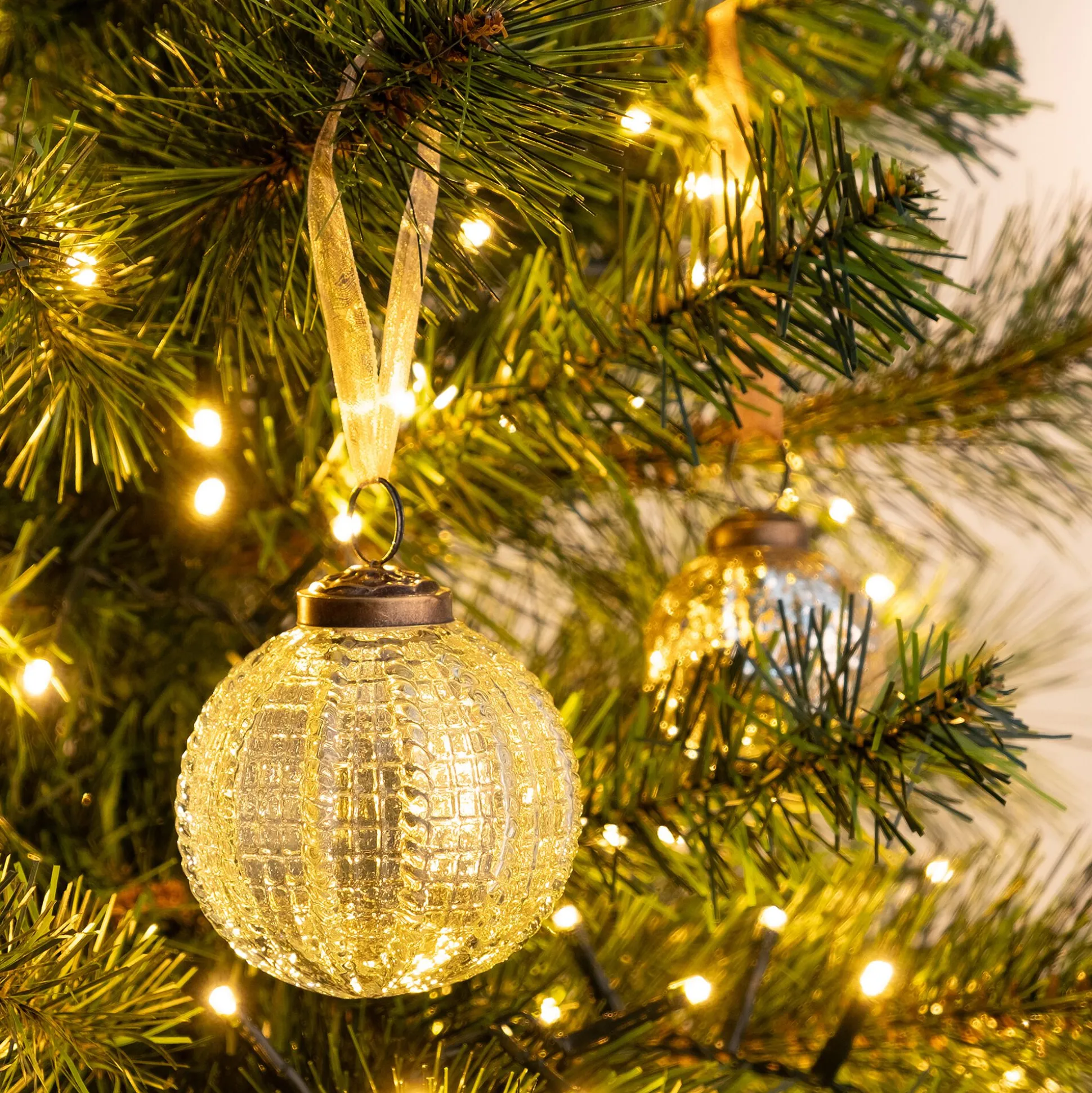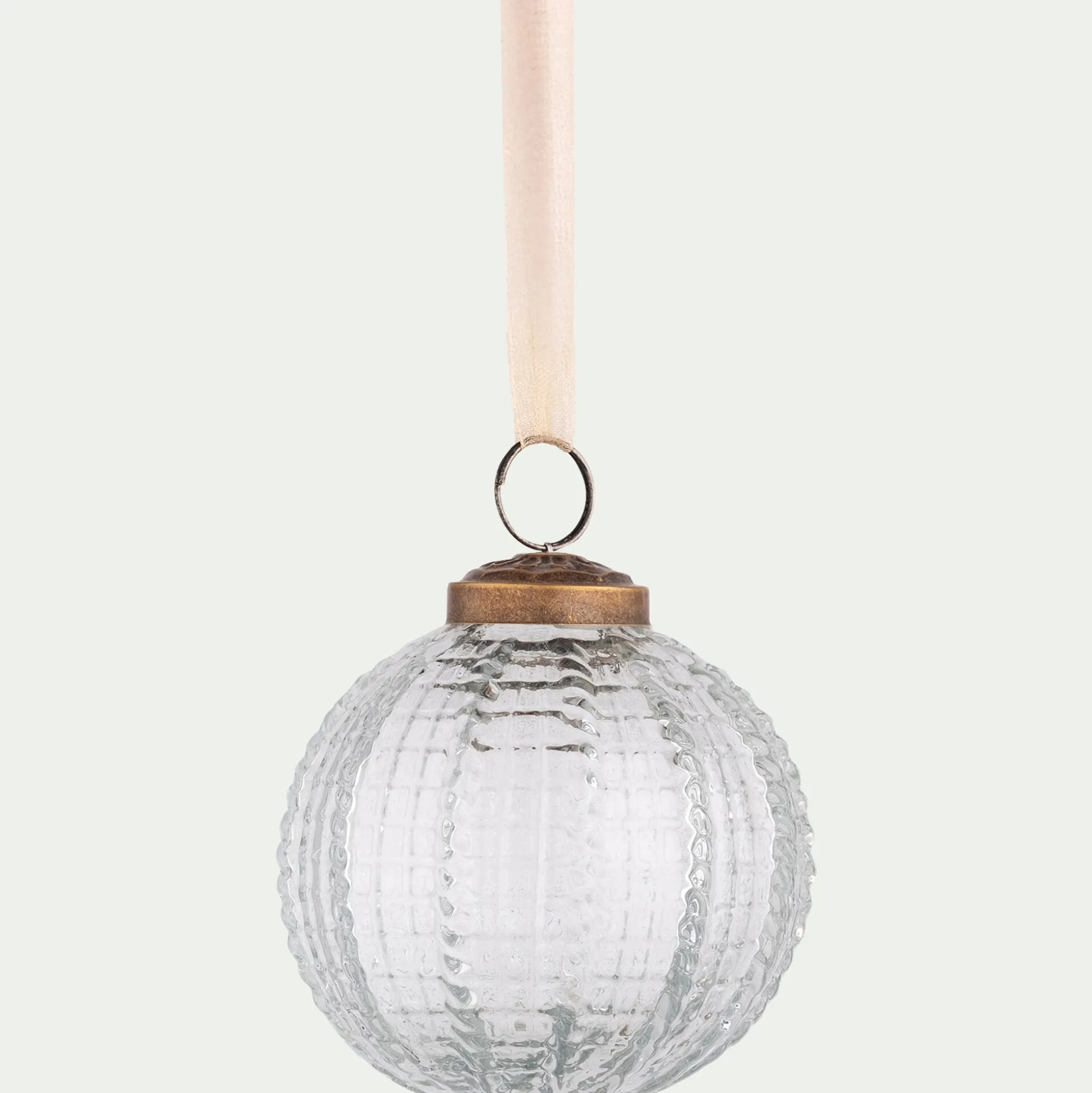 Transparente, la boule de Noël Vuria s’associe à tous les thèmes de décoration. Traditionnel, moderne, chic ou minimaliste : toutes les interprétations sont possibles. Cette décoration du sapin se suspend à l’aide d’un ruban et d’une finition en laiton doré. De forme ronde, cette boule de Noël en verre présente une surface texturée qui appuie son caractère.