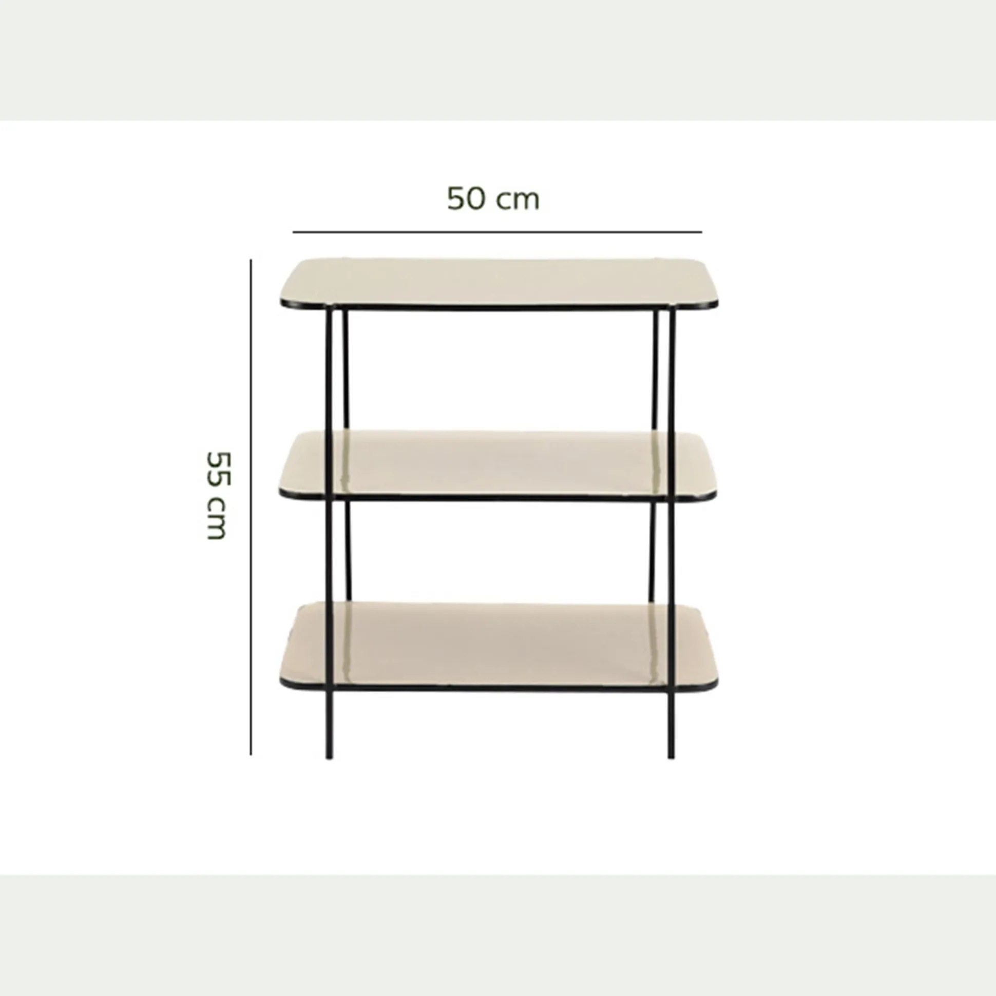 Donnez une touche de modernité et de fonctionnalité à votre intérieur avec ce bout de canapé en acier. Avec ses élégants piètements noirs et ses trois plateaux blancs écru, cette petite table d’appoint apporte une allure contemporaine et épurée à votre salon. Pratique et esthétique, ce bout de canapé est constitué de trois plateaux qui vous permettent d’exposer vos objets décoratifs, livres ou plantes, tout en optimisant l’espace de votre pièce. Polyvalent, il est l’accessoire idéal pour créer un coin à la fois fonctionnel et au charme inégalable près de votre canapé.