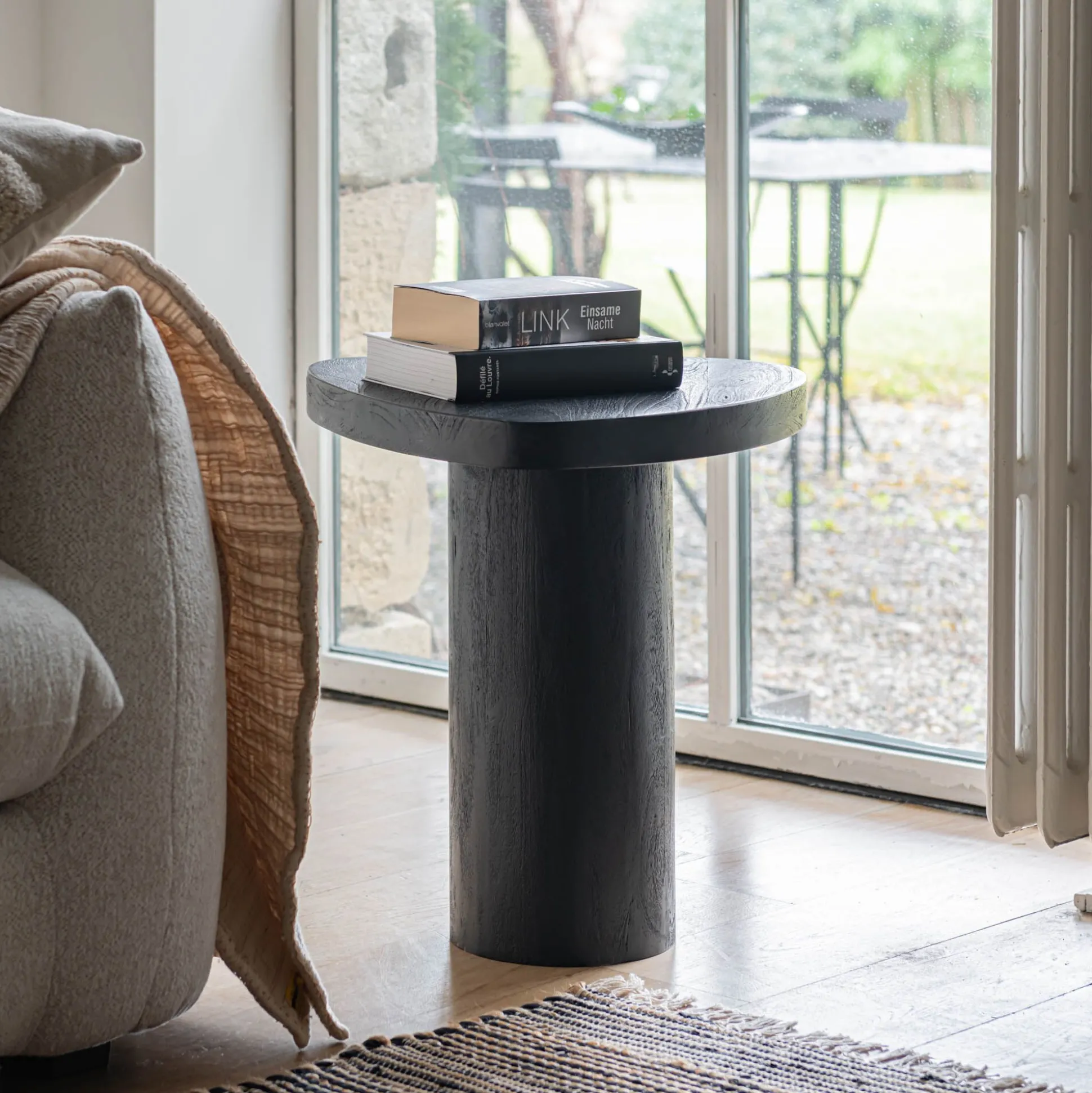 Bout de canapé en bois de manguier D50cm – noir