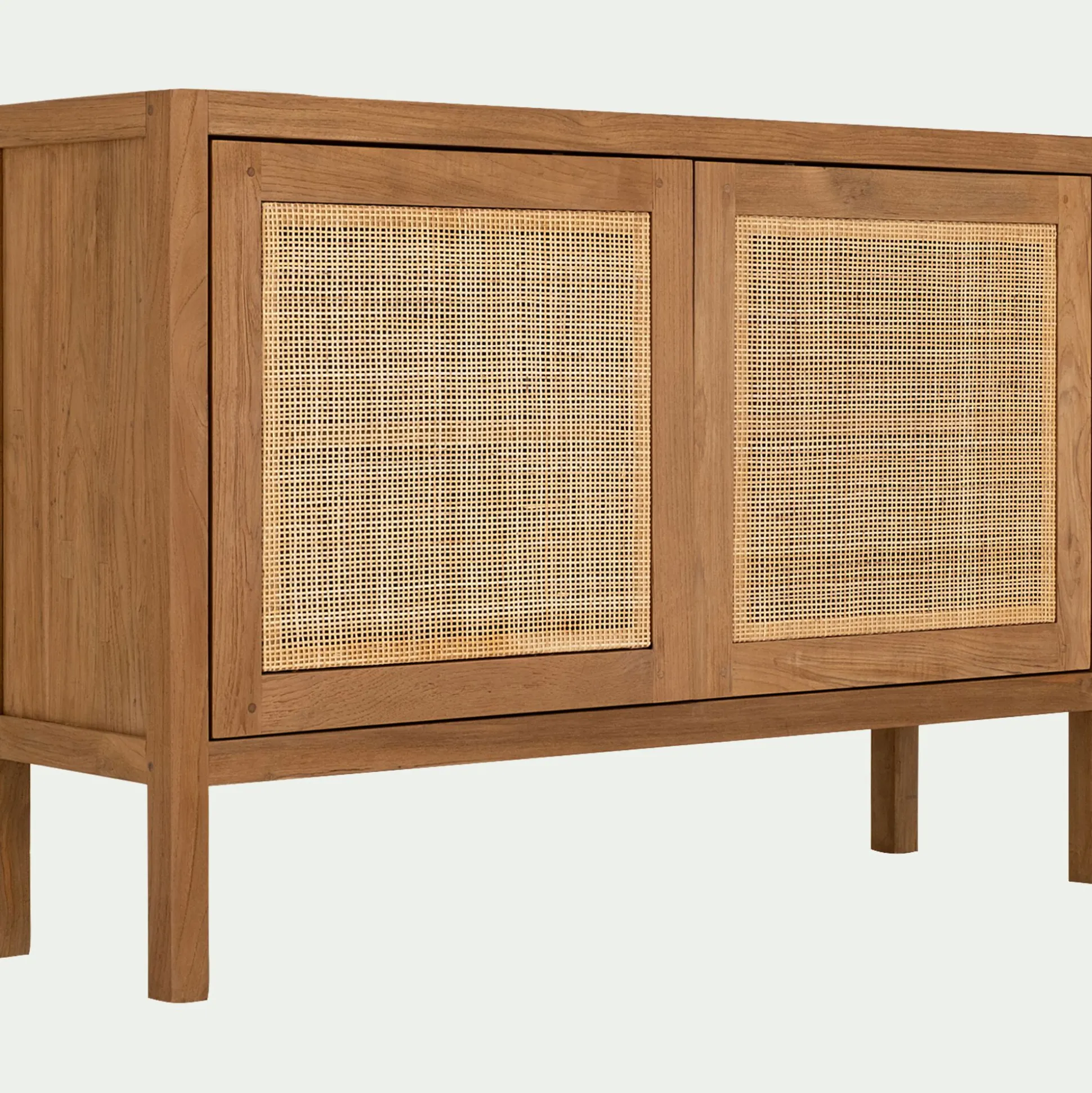 Buffet bas en teck recyclé et cannage