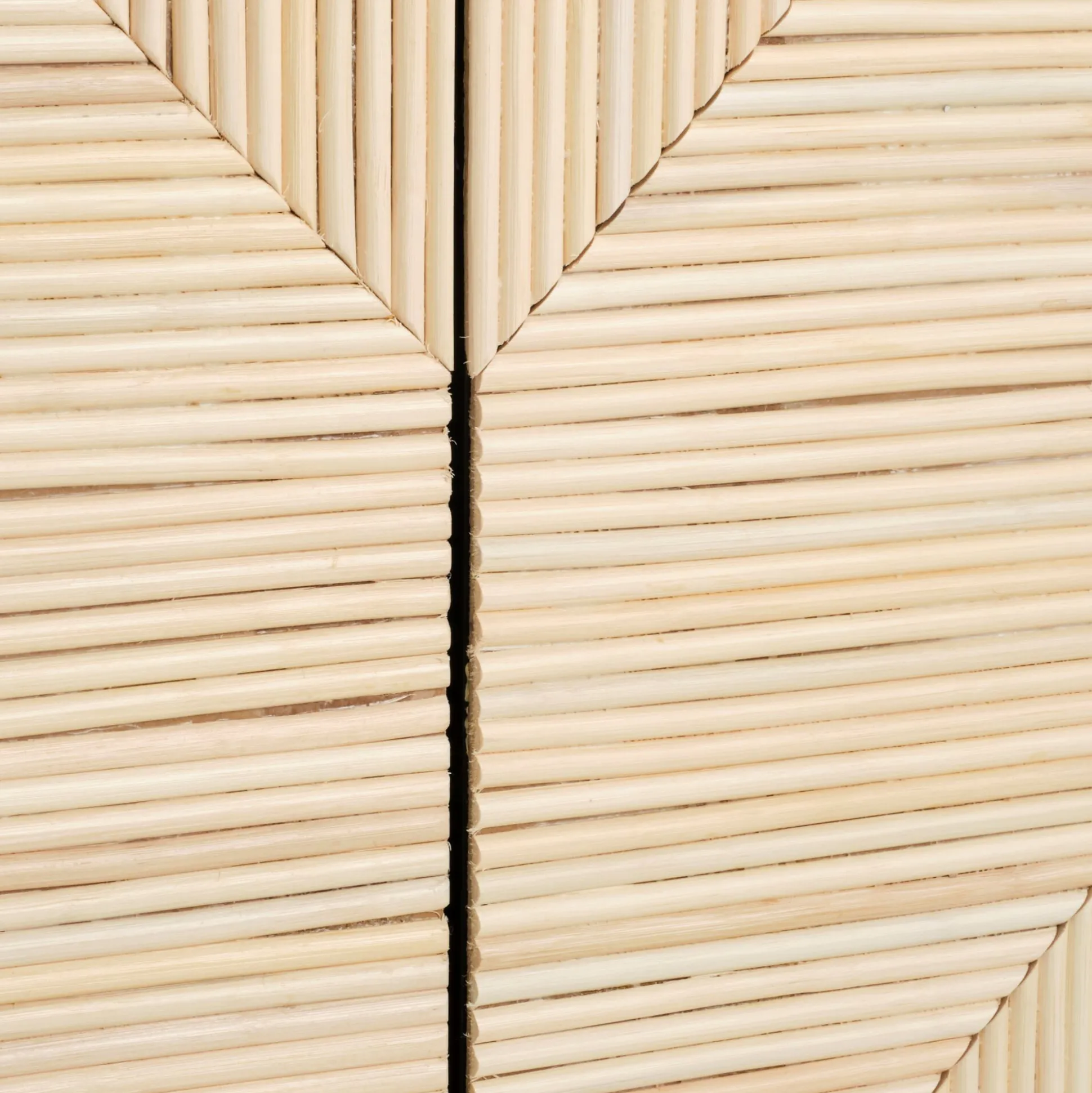 Ce buffet en bois séduit par son design, son association de couleurs et de textures. Muni de deux portes battantes en rotin, son caisson renferme des étagères qui accueilleront vaisselle, livres ou objets en tout genre. Ce buffet haut est le meuble idéal pour votre pièce de vie. En effet, ce mobilier au charme naturel apportera du cachet à votre décoration de votre salle à manger ou votre salon. Ce buffet trouvera donc aisément sa place dans votre intérieur.