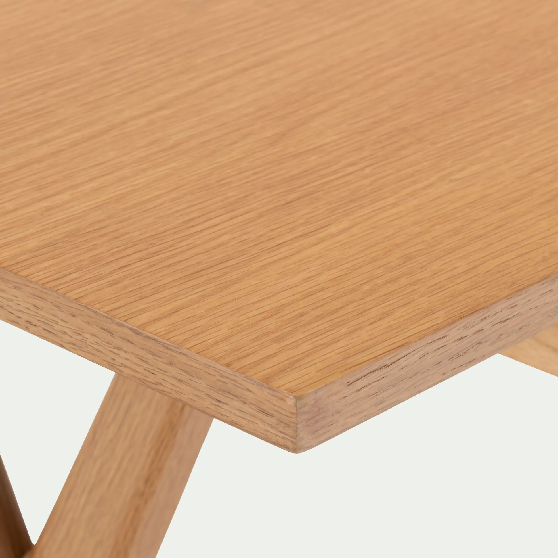 Aménagez un espace de travail chaleureux mais épuré avec le bureau en bois Losilla. Avec son piètement inspiré des tréteaux, ce bureau en chêne a une allure subtilement vintage. De 50×170 cm, le plateau offre un bel espace où installer son poste de travail. Avec ses deux tiroirs intégrés, ce bureau propose des espaces de rangement, parfaits pour y glisser des documents et garder un coin travail organisé. Ce bureau fixe est laissé au naturel et insuffle dans la pièce un vent d’authenticité.