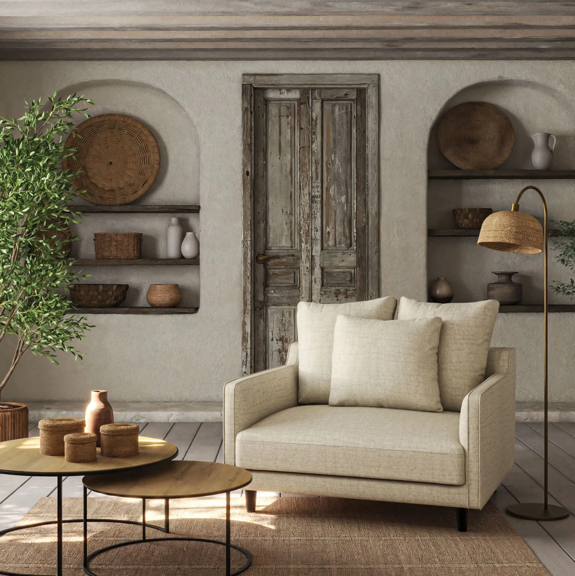 Canapé 1.5 places fixe en tissu – beige roucas