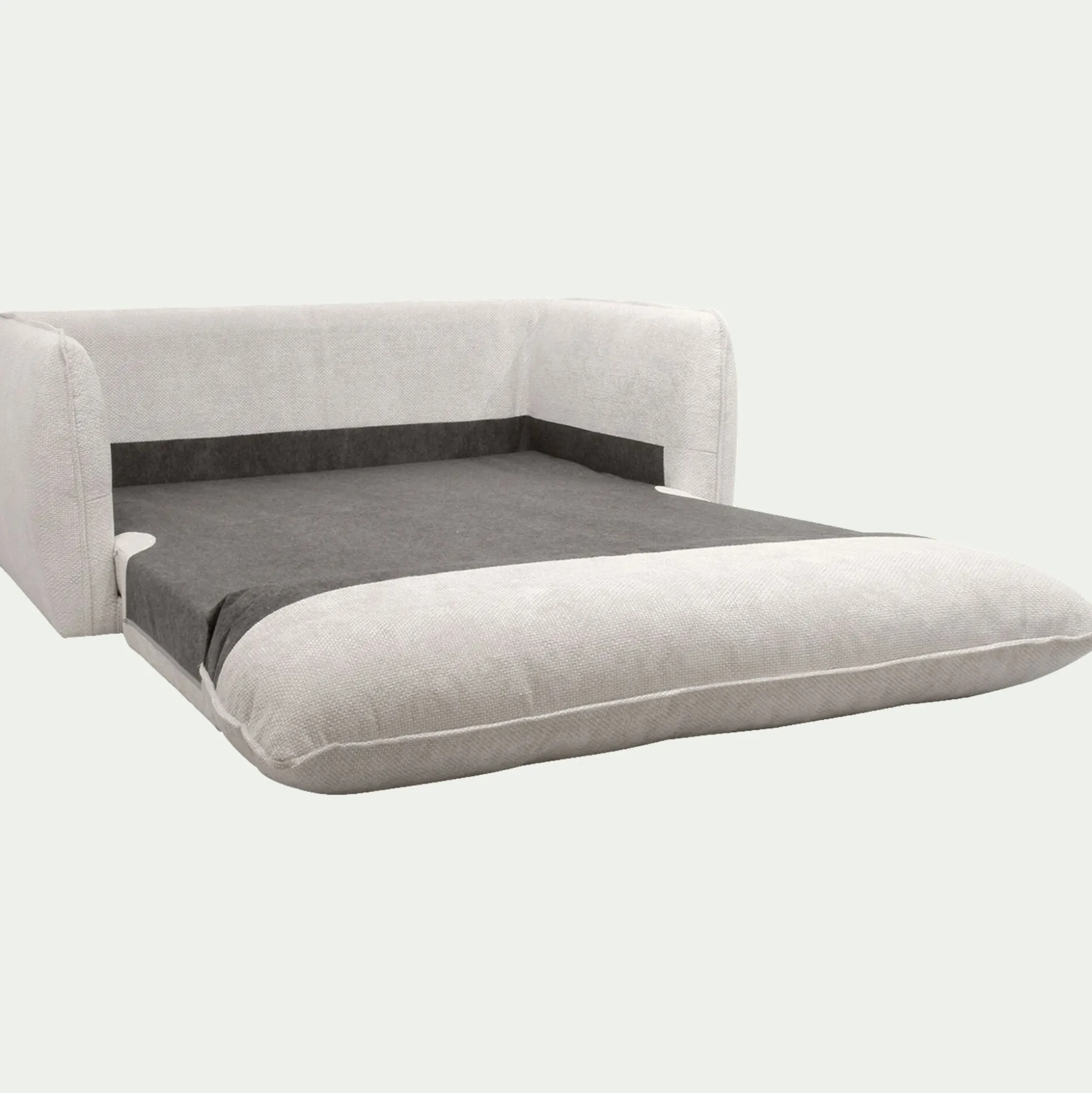 Le canapé convertible Léo est la solution idéale pour les petits espaces. Avec son design compact et contemporain, il s’intègre aussi bien dans un salon que dans un bureau. De jour, il offre une assise confortable comme canapé 2 personnes, avec une vraie structure en bois massif et des accoudoirs fins qui allègent la silhouette. De nuit, il se transforme en un couchage d’appoint grâce à un système d’ouverture rapide et facile. Son revêtement en tissu beige alpilles, à la fois doux et résistant, illumine l’espace d’une touche naturelle et apaisante. Pratique au quotidien, ses coussins de dos sont déhoussables grâce à une fermeture à glissière. Ce petit canapé convertible est fabriqué en France avec un souci du détail et du confort.