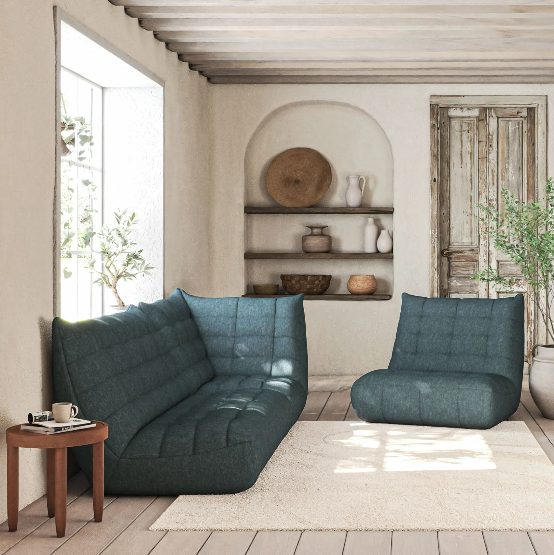 Ce canapé 2 places à tout pour plaire. Sa forme aux rondeurs généreuses apporte une ambiance chaleureuse et un confort douillet. Son esthétisme donnera un style tendance à votre salon d’intérieur. Par sa couleur bleu, il pourra se marier à tous les styles de décoration. Fabriqué par des mains expertes du métier, cet élément est intégralement conçu en Europe. Parce qu’alinea a à coeur de vous satisfaire, cette gamme propose un large choix d’éléments, rendant celle-ci modulable à souhait. Vous pourrez ainsi mixer les tissus, les formes et les couleurs à votre guise et vous permettra de faire varier et faire vivre votre salon à votre image.