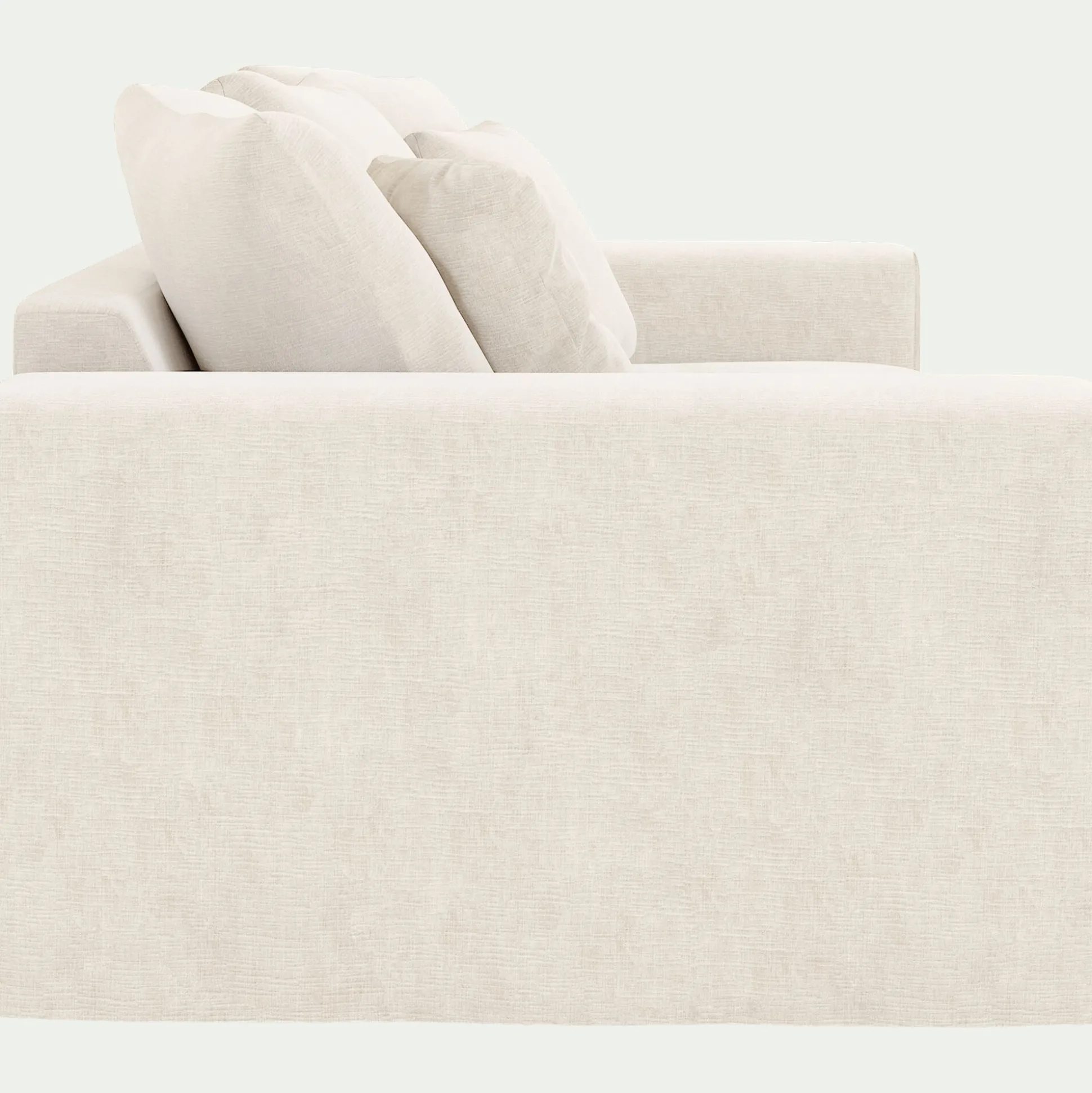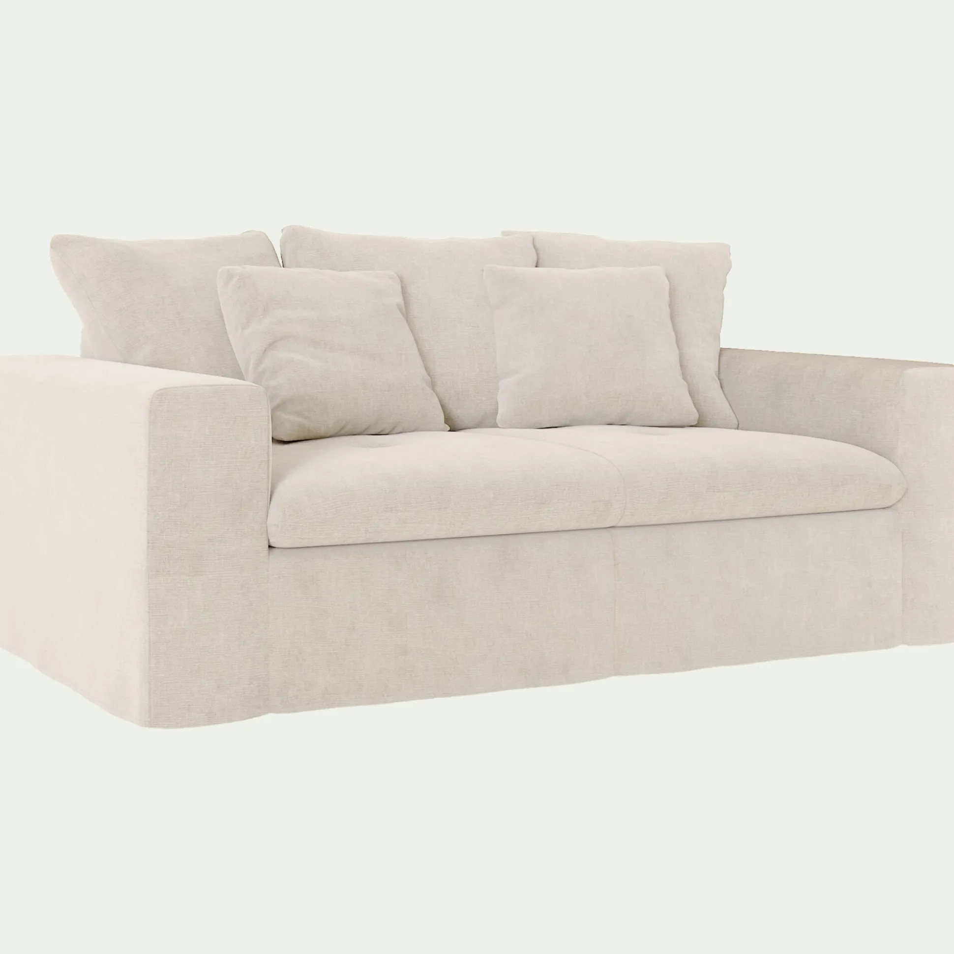 Laissez vous séduire par le charme du canapé Elea, un meuble pensé pour sublimer votre salon. Ce canapé 2 places fixe allie à la fois esthétisme et confort, pour un espace de vie chaleureux. Son dossier à l’accueil plume vous procure une sensation de bien-être douillet alors que sa profonde assise vous donne une impression cocooning d’enveloppement. Ses coussins de dossier, soigneusement jetés, accentuent son aspect accueillant tout en apportant une touche de décoration raffinée. Son surmatelas délicatement intégré confère à l’ensemble une sensation de légèreté fortement appréciable. En ce qui est du design, ses lignes épurées et sa jupe font de lui un atout charme intemporel. Revêtu d’un tissu doux de couleur beige, il vous permet de vous prélasser tout en apportant un côté lumineux et apaisant à votre pièce. Idéal pour la détente ou pour recevoir famille et amis, il incarne à merveille l’équilibre entre sophistication et confort inouï.