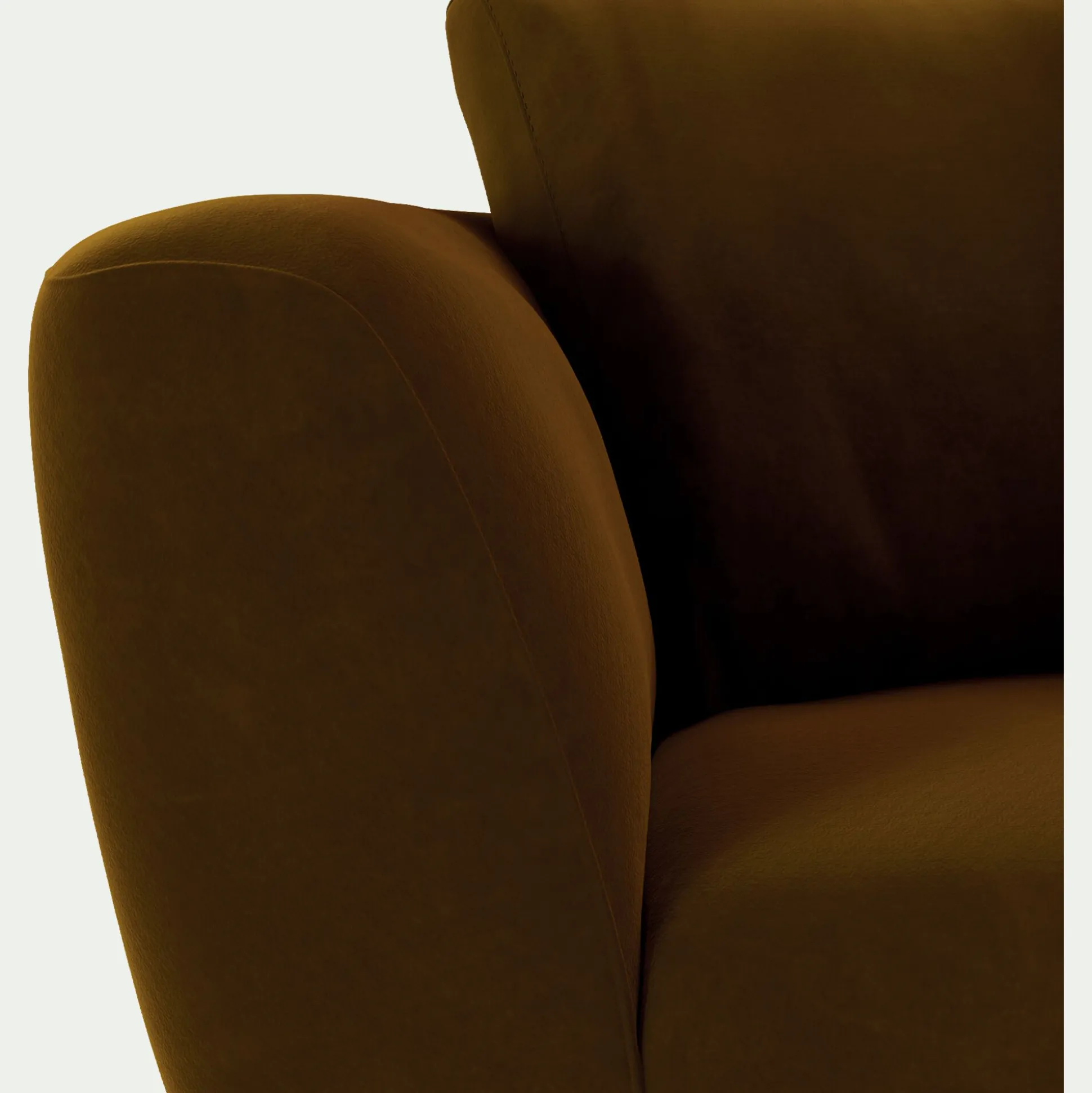 Avec son revêtement en tissu bronze, ce canapé 2 places conjugue douceur et élégance. Son tissu velours met en valeur chaque courbe, apportant une touche raffinée à l’espace. Le bronze, teinte chaude et réconfortante, trouve facilement sa place dans une décoration intemporelle, qu’elle soit contemporaine, bohème ou vintage. Son assise moelleuse invite à la détente, tandis que son dossier partiellement garni de plumes d’oie enveloppe de confort. Pensé pour durer, ce canapé fixe repose sur une structure en bois certifié FSC. Ses coussins de dos déhoussables facilitent l’entretien. Une pièce fabriquée en Italie, où design et confort s’unissent avec subtilité.