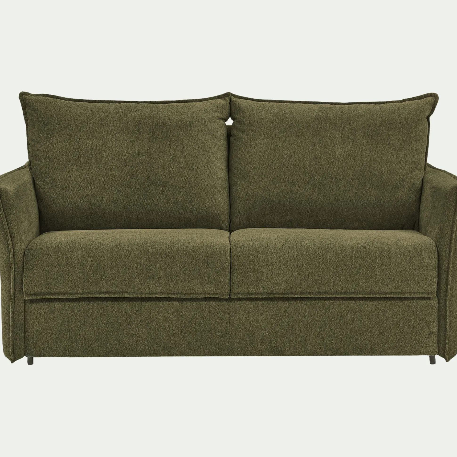 Le canapé Moya offre un soutien optimal adapté à chaque partie du corps. Ce canapé 3 places convertible à la fabrication italienne, confectionné à partir du savoir faire local, vous permet de vous détendre dans une pièce hautement qualitative. Le soir, dépliez votre canapé et transformez-le en un lit au couchage 140×195 cm d’une densité de 35kg/m3 qui vous permettra d’accueillir famille et amis. Très confortable, ce canapé peut servir de couchage quotidien. Son mécanisme métallique vous permet de le déplier en quelques secondes sans enlever ses coussins. Ce canapé en tissu, avec sa couleur vert cèdre et son liseré décoratif, apportera de l’élégance à votre salon.
