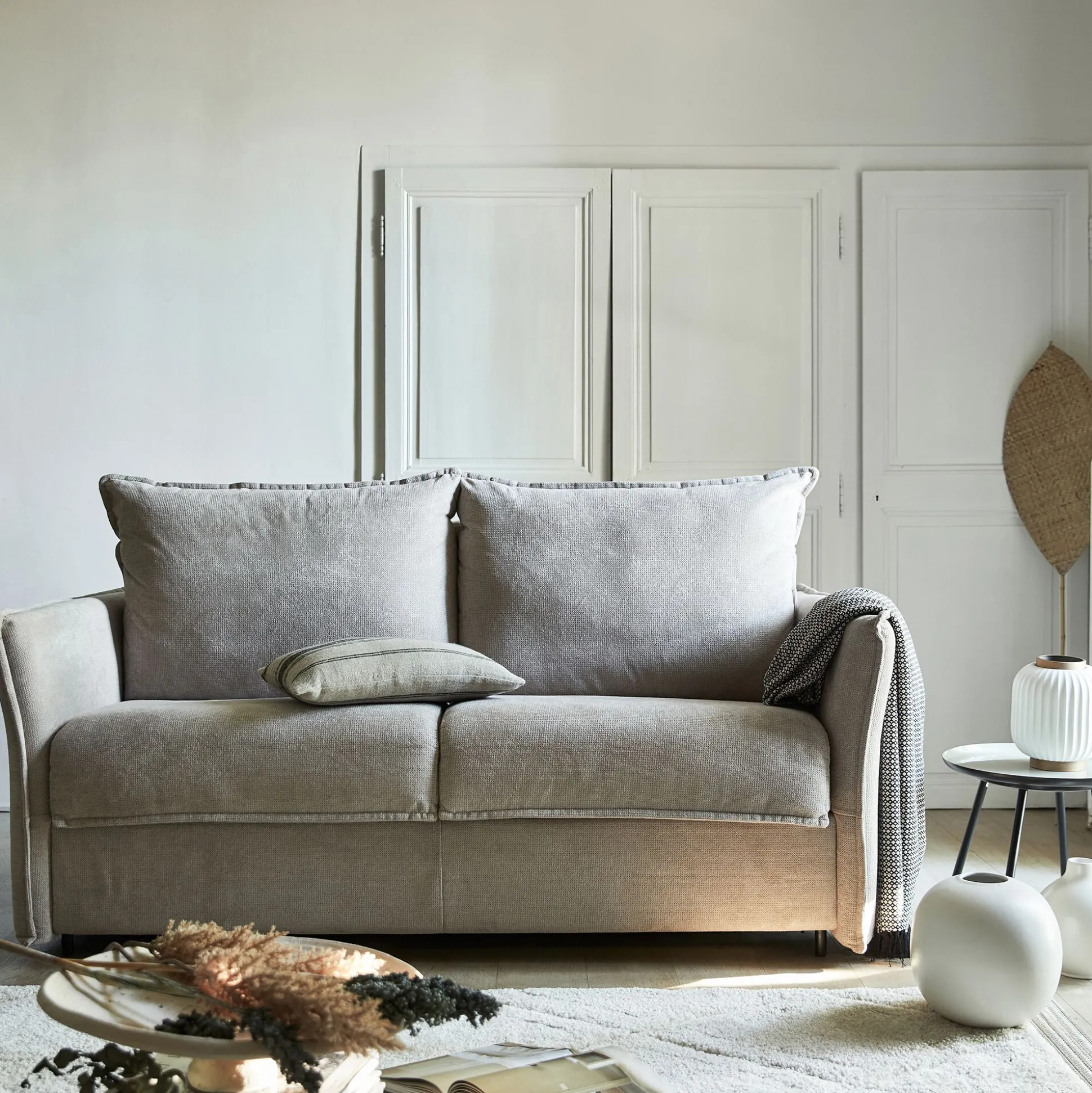 Canapé 3 places convertible en tissu avec matelas densité 25kg/m3 – beige roucas