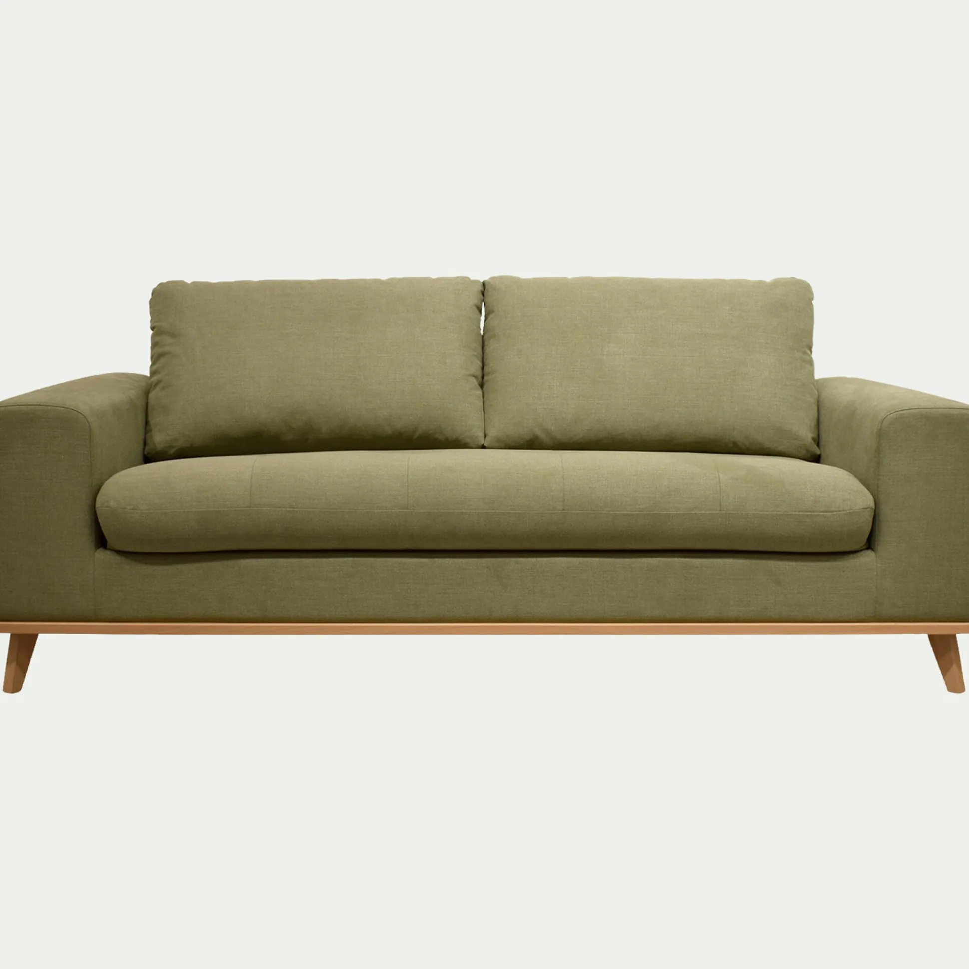 Le canapé 3 places convertible Capia allie confort, style et praticité. Ce canapé est revêtu du tissu Cosmo dans notre coloris vert kaki, tendance et naturel. De jour, ce canapé droit offre une assise spacieuse pour 3 personnes. Le soir venu, il se déplie en quelques secondes grâce à son système express et révèle un couchage de 140×188 cm. Son matelas intégré de 10 cm d’épaisseur est parfait pour un usage occasionnel, par exemple pour recevoir famille ou amis pour la nuit. Son tissage résistant apporte douceur et durabilité, parfait pour une utilisation quotidienne. Son design repose sur une structure en pin massif et des pieds en hêtre massif, gage de solidité et de durabilité. Les coussins de dos déhoussables facilitent l’entretien. Une fabrication française qui conjugue esthétique et fonctionnalité.