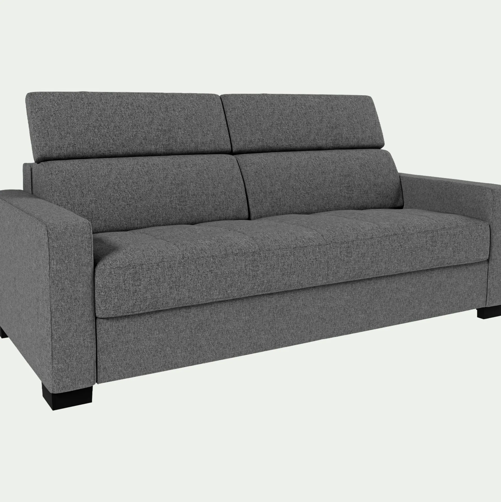 Mauro est une gamme de canapés au style contemporain et d’une grande élégance pour décorer votre salon. Conçu en Italie, il est le fruit d’un travail minutieux et d’un savoir-faire unique. Ce canapé 3 places en tissu pop couleur gris moyen, arborant de larges accoudoirs de 15 cm et des têtières relevables, vous procurent un confort d’assise incomparable et vous invite à savourer d’agréables moments de détente. Avec sa fonction convertible, vous pourrez le transformer en un confortable couchage afin d’accueillir famille et amis. Un meuble de fabrication européenne qui sera la pièce maîtresse de votre salon va et sublimera votre décoration d’intérieur.