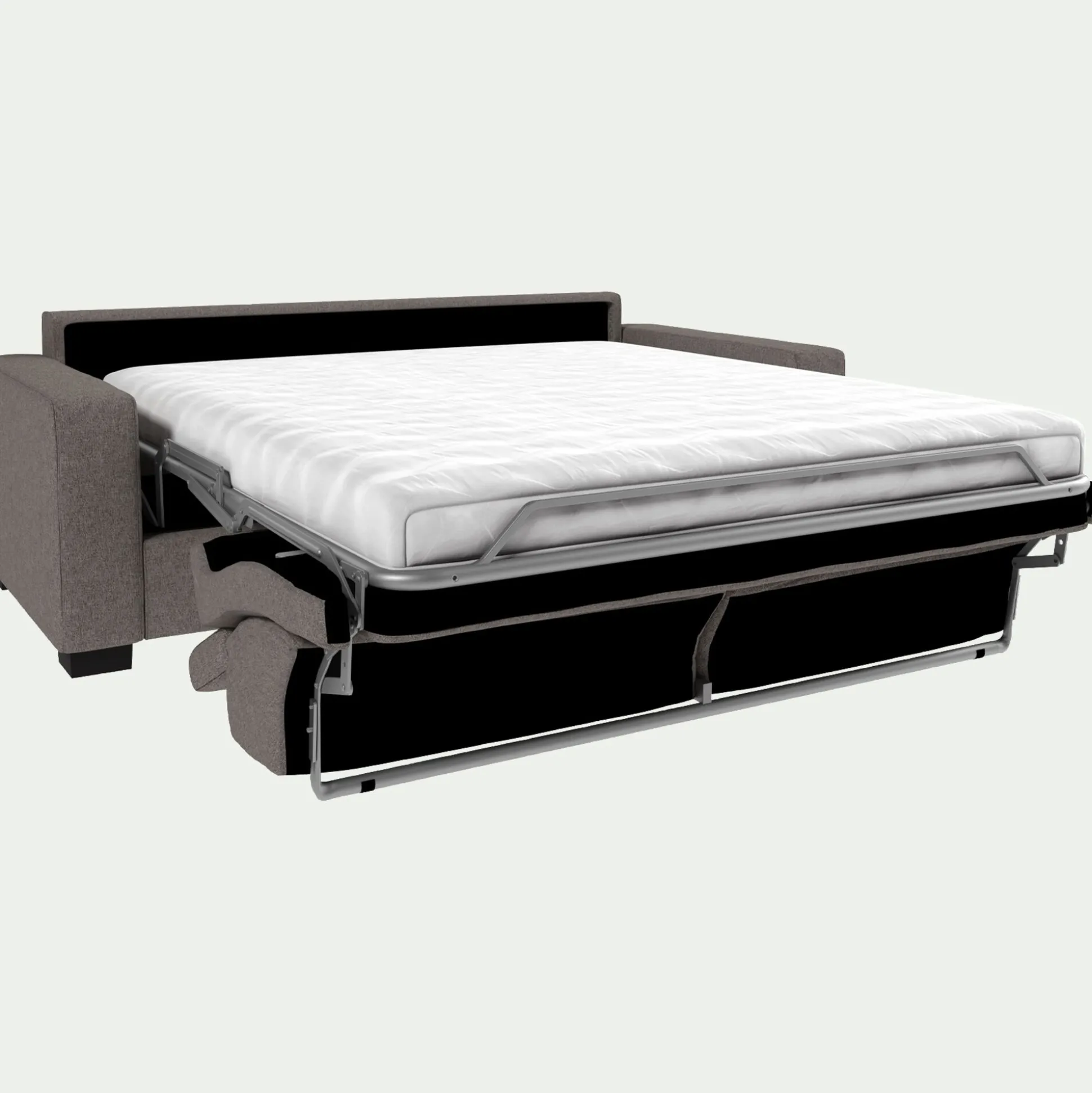 Type de canapé : le canapé convertible ouvert mesure L.190 x P.205 cm avec un matelas de 120×195 cm.
