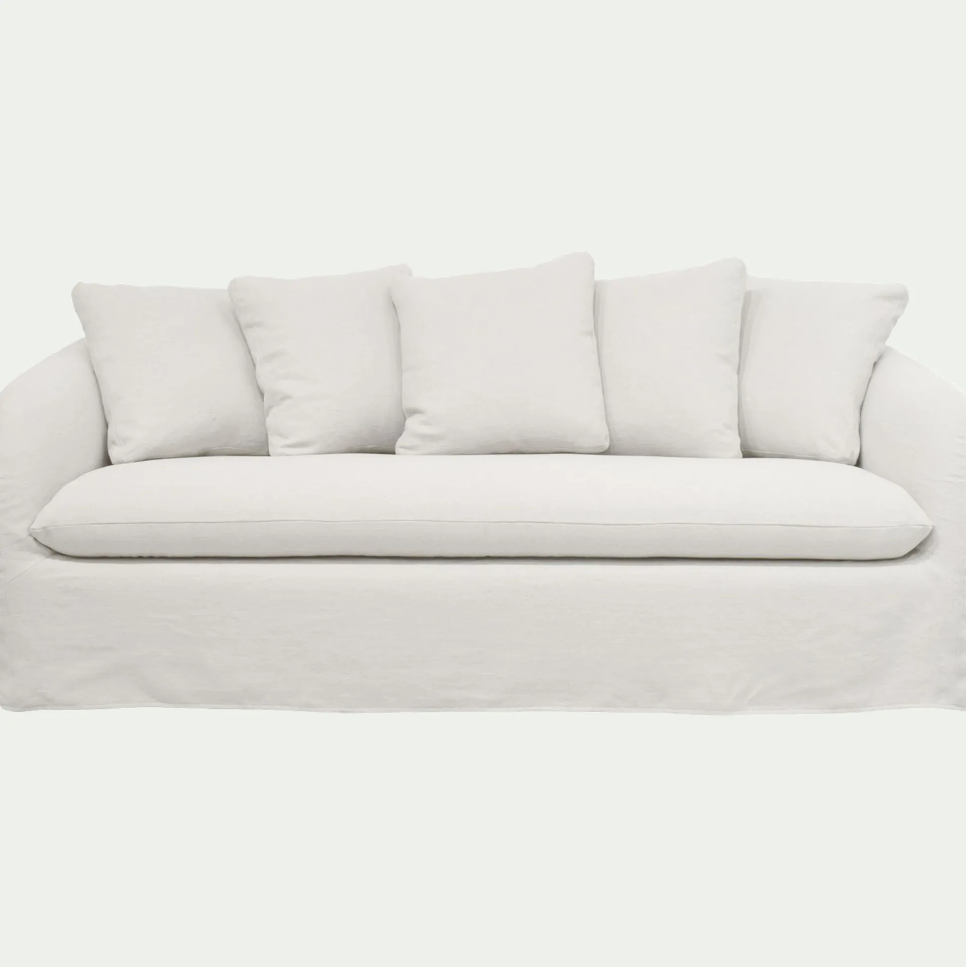Le canapé Marcel est une ode à la ville de Marseille et à son patrimoine. Son nom fait écho à la provence en rendant hommage à sa culture. Conçu pour 3 personnes, ce canapé au design singulier donne de l’allure à votre salon tout en offrant une grande assise. Ses multiples coussins font de lui un canapé plus douiller et chaleureux. Son tissu en lin, son design en rondeur et sa jupe lui donnent une élégance incontestable. Le lin, un tissu naturel symbole de pureté et de confort, vous offre une douceur qui vous bercera au fil des saisons. Extrêmement résistant et réputé pour ses qualités thermorégulatrices, il vous permettra de vous lover au mieux tout au long des saisons et pendant plusieurs années. En lin blanc, ce canapé noble est un éloge à la Méditerranée.