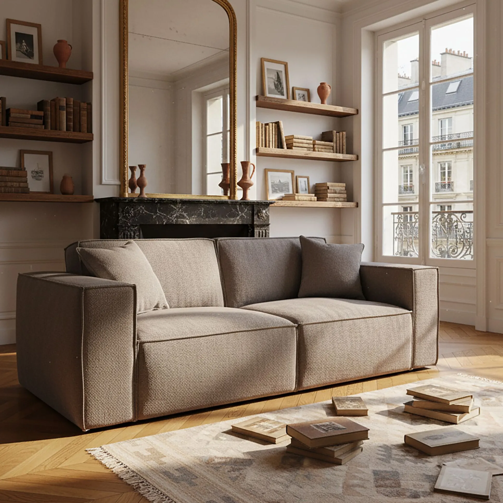 Avec son design épuré et son élégance naturelle, ce canapé droit 3 places s’impose comme une pièce centrale du salon. Son revêtement en tissu gris adoucit la décoration et s’harmonise avec tous les styles de décoration, du contemporain au plus classique. Conçu en Ukraine, il allie qualité et confort grâce à sa structure en pin massif et son assise dotée de ressorts Nosag, réputés pour leur durabilité et leur souplesse. Son assise généreuse et son dossier accueillant créent un espace cosy, parfait pour des instants de détente ou des moments de convivialité. Idéal pour aménager un salon chaleureux et moderne, ce canapé fixe séduit par son allure sobre et intemporelle, permise grâce à la qualité du tissu genesis.