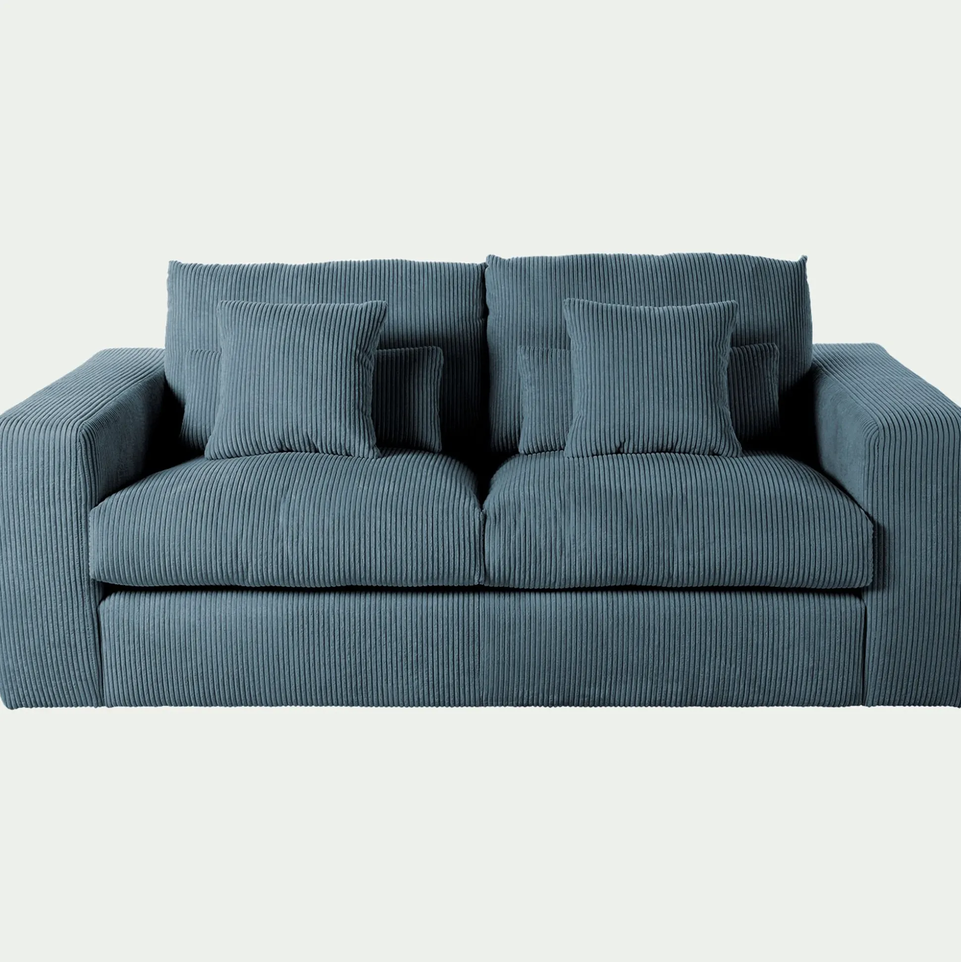 Le canapé Piuma est idéal pour se prélasser dans votre salon. Avec ses grandes assises, ce canapé d’angle droit en velours côtelé vous offre un confort exceptionnel. Il vous permet de vous détendre au coeur de coussins moelleux dans un nuage de douceur renforcé par son tissu délicat. Vous pourrez ainsi recevoir famille et amis lors d’un moment apaisant. Ce canapé 3 places fixe de couleur bleue apporte également une touche design moderne et élégante à votre salon. Son velours côtelé donne un côté cocooning qui vous permet de transformer votre pièce en un espace chaleureux.