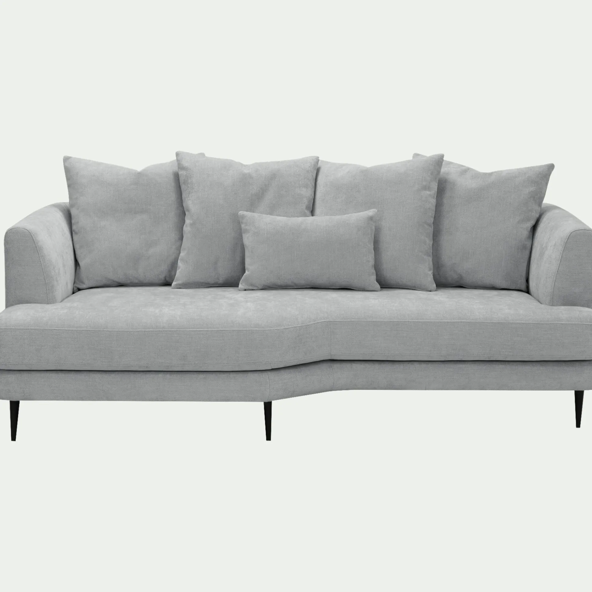 Avec sa découpe originale et asymétrique sur le côté gauche, ce canapé 3 places impose une allure unique et raffinée dans le salon. Son design singulier se marie à l’élégance discrète de son coloris gris, doux et intemporel, pour sublimer la décoration intérieure. Son décroché crée une assise plus profonde, idéale pour savourer des instants de détente dans un confort absolu. À la fois atypique et sophistiqué, ce canapé fixe en tissu devient une pièce maîtresse du séjour et ne manquera pas de séduire les convives par son charme distinctif.