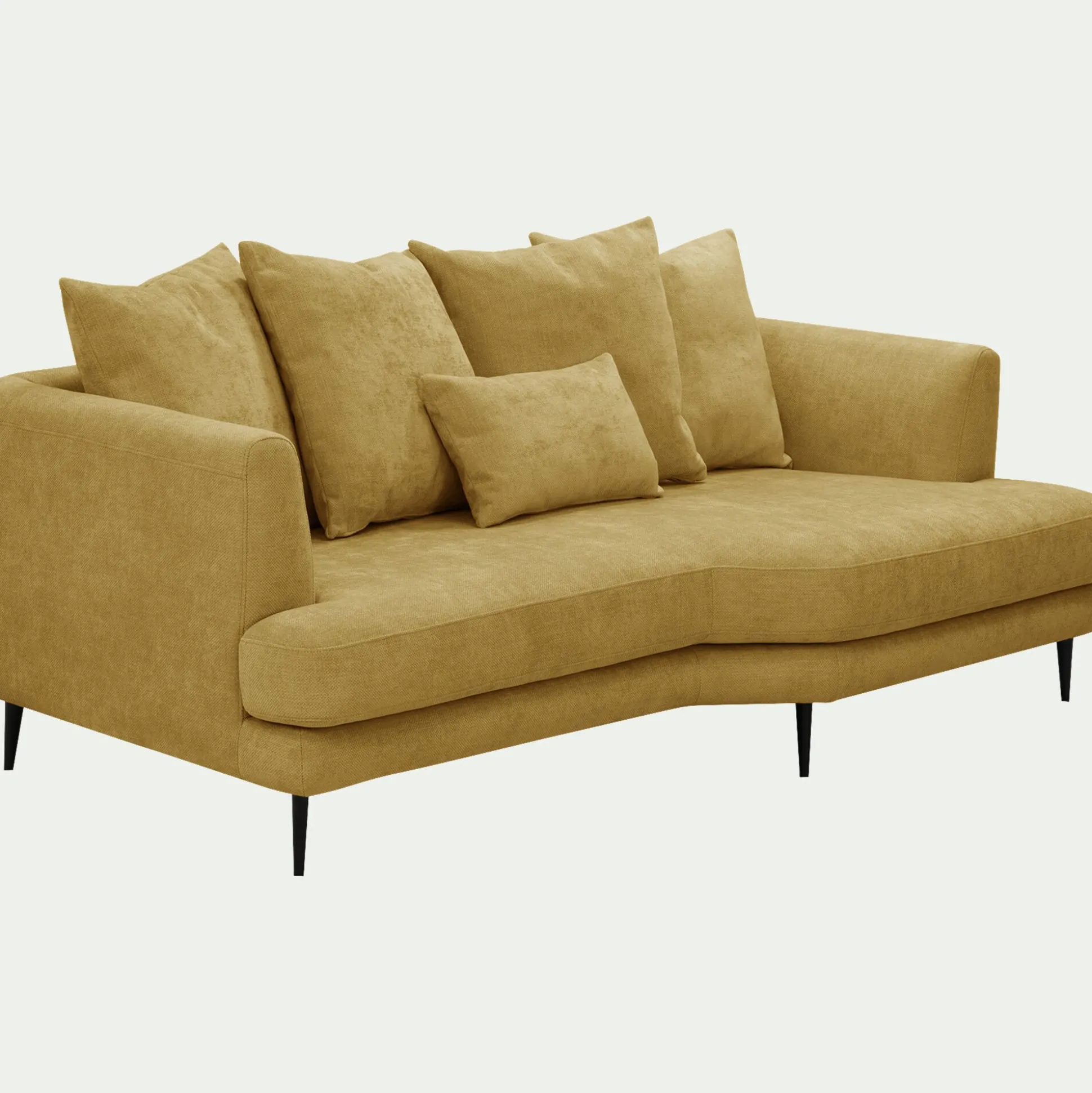 Avec sa découpe originale et asymétrique sur le côté gauche, ce canapé 3 places impose une allure unique et raffinée dans le salon. Son design singulier se marie à l’élégance discrète de son coloris jaune argan, doux et intemporel, pour sublimer la décoration intérieure. Son décroché crée une assise plus profonde, idéale pour savourer des instants de détente dans un confort absolu. À la fois atypique et sophistiqué, ce canapé fixe en tissu devient une pièce maîtresse du séjour et ne manquera pas de séduire les convives par son charme distinctif.