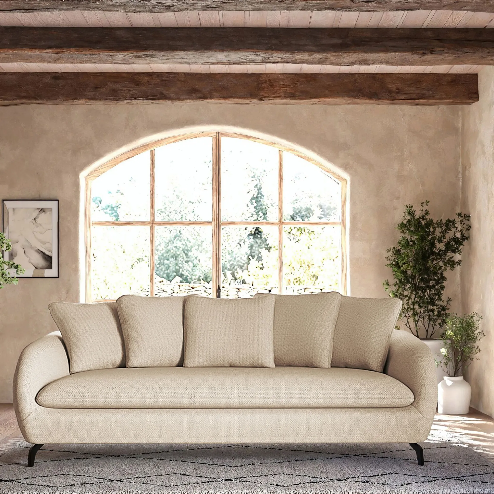 Canapé 4 places convertible en tissu – blanc écru