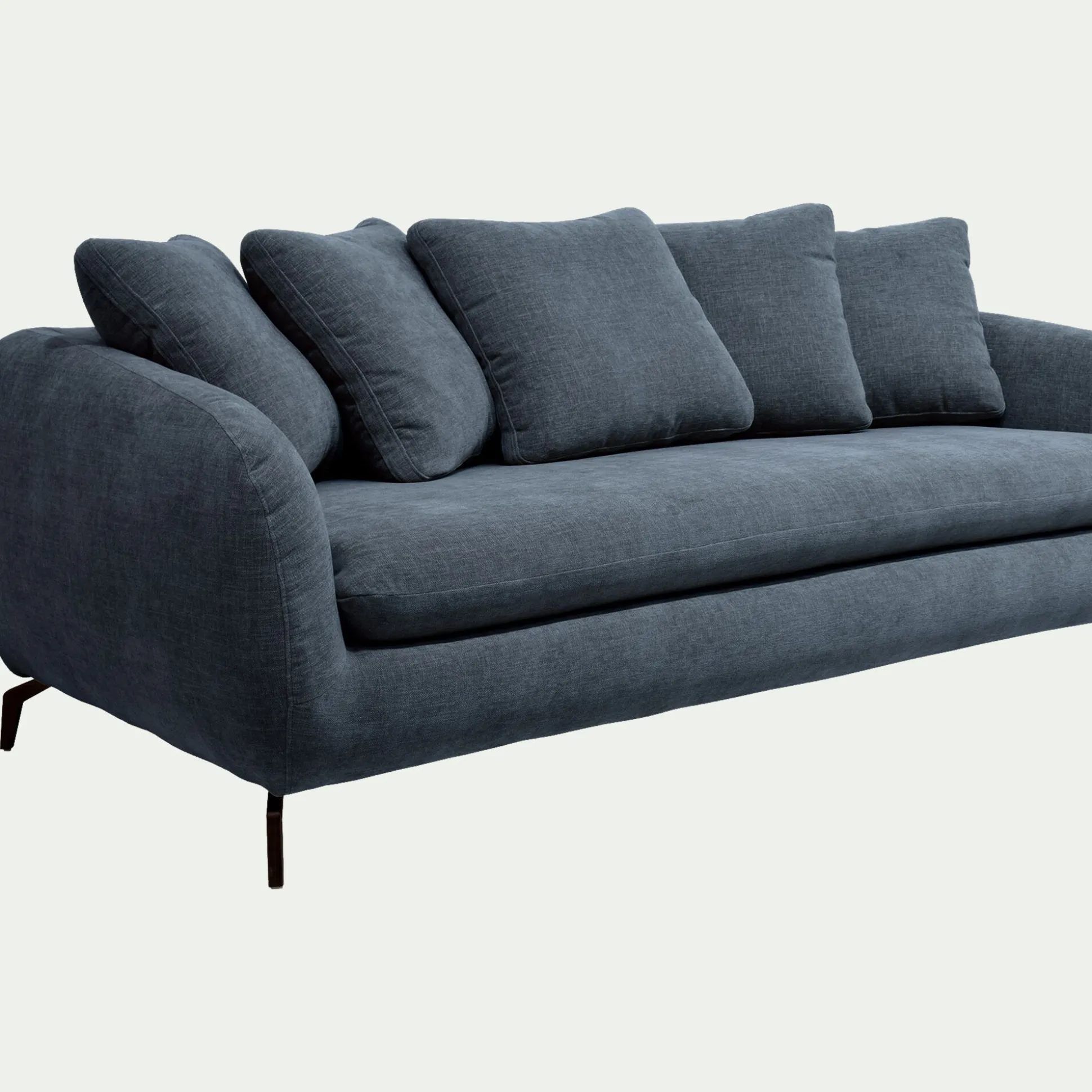 Un joli canapé convertible en tissu pour profiter agréablement de votre salon. Un look contemporain et accueillant, sublimé par un piétement original en acier noir. Vous apprécierez la forme du dossier et des accoudoirs qui vous offrent un maintien optimal de votre dos pour un confort d’assise exceptionnel. Un canapé fabriqué en France, dans des ateliers proches de la ville de Bourge, qui incarne l’excellence du savoir-faire français. Un coloris bleu qui apporte une note lumineuse et tendance à votre déco de salon.