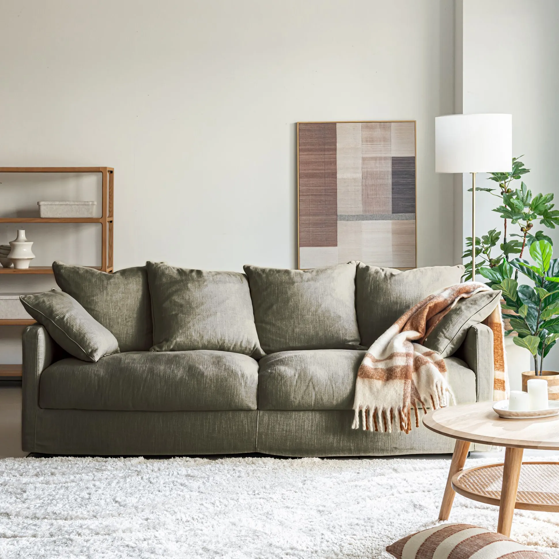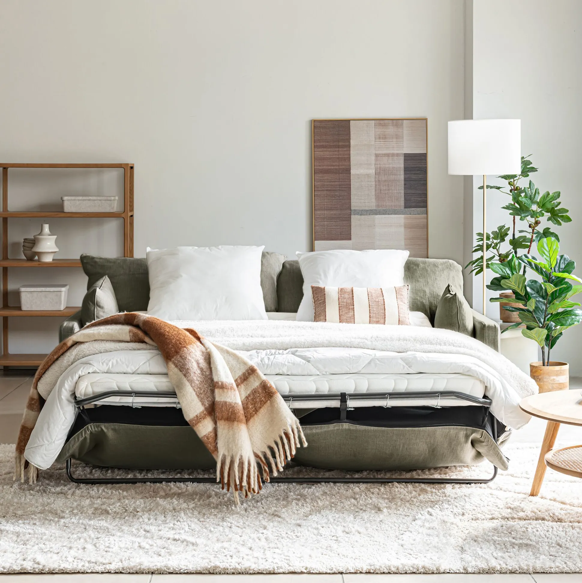 Découvrez ce charmant canapé 4 places convertible en lin et en viscose qui allie style et confort. En effet, Simona est un canapé fabriqué en Italie qui offre une assise confortable et des lignes toutes en rondeur pour un canapé qui a de l’allure tout en invitant à la détente. Convertible, il est doté d’un matelas en 160x185cm et d’un sommier électro-soudé afin de profiter d’un couchage d’appoint de qualité. Aménagez une pièce de vie tendance et accueillante grâce à ce beau canapé au style affirmé et raffiné. Ici en vert cèdre, une couleurqui évoque la nature et se combine avec tous les styles de déco et de mobilier.