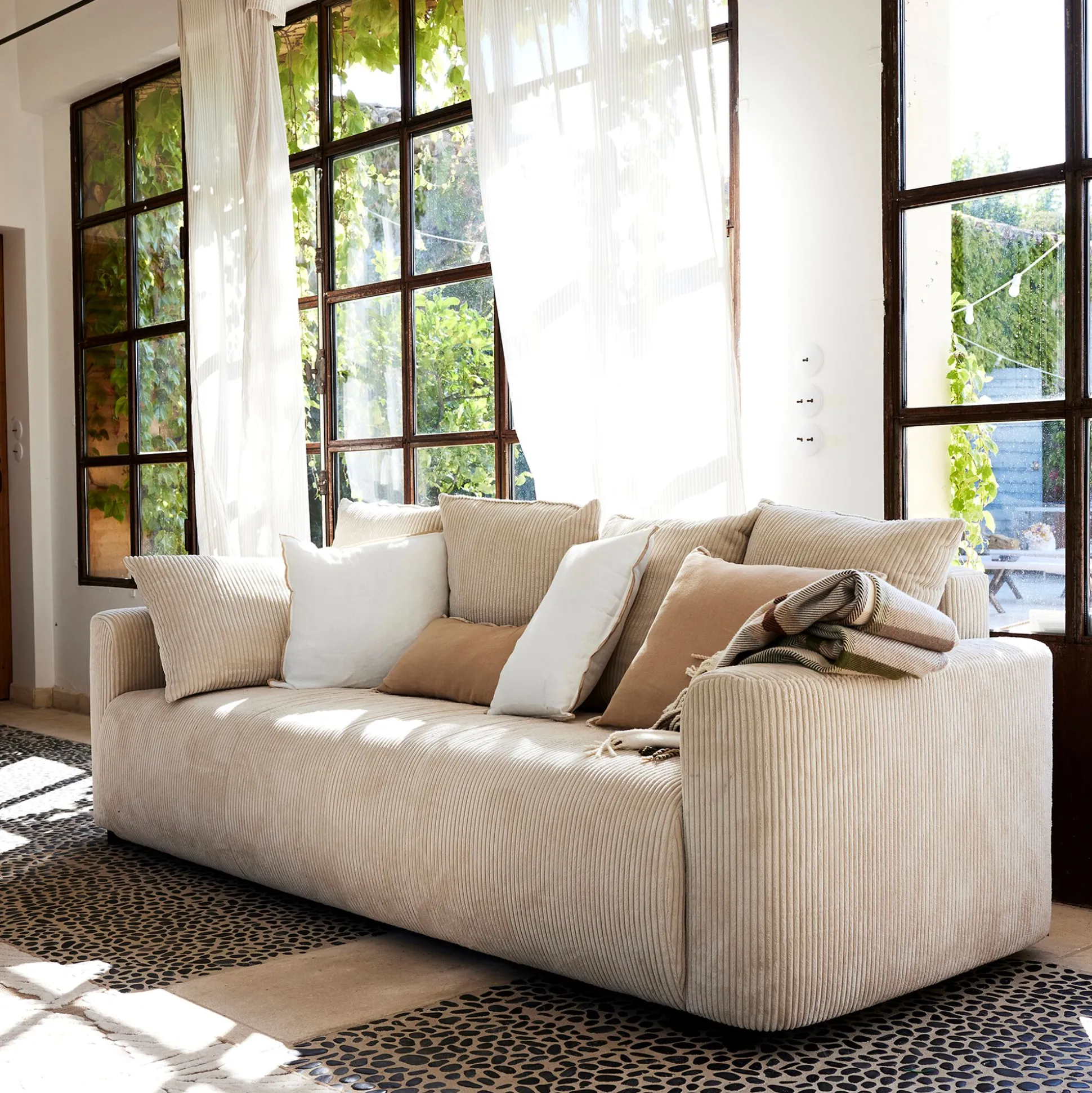 Canapé 4 places convertible en velours côtelé – beige roucas