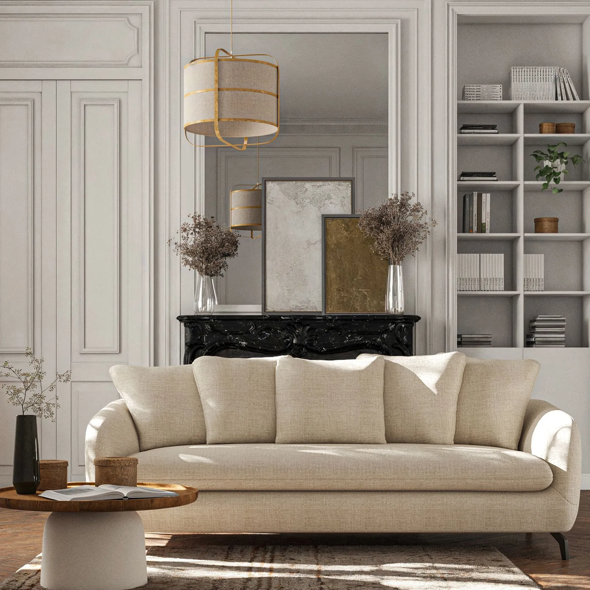 Un joli canapé fixe en tissu pour profiter agréablement de votre salon. Un look contemporain et accueillant, sublimé par un piétement original en acier noir. Vous apprécierez la forme du dossier et des accoudoirs qui vous offrent un maintien optimal de votre dos pour un confort d’assise exceptionnel. Un canapé fabriqué en France, dans des ateliers proches de la ville de Bourge, qui incarne l’excellence du savoir-faire français. Un coloris beige roucas qui apporte une note lumineuse et chaleureuse à votre décoration de salon.
