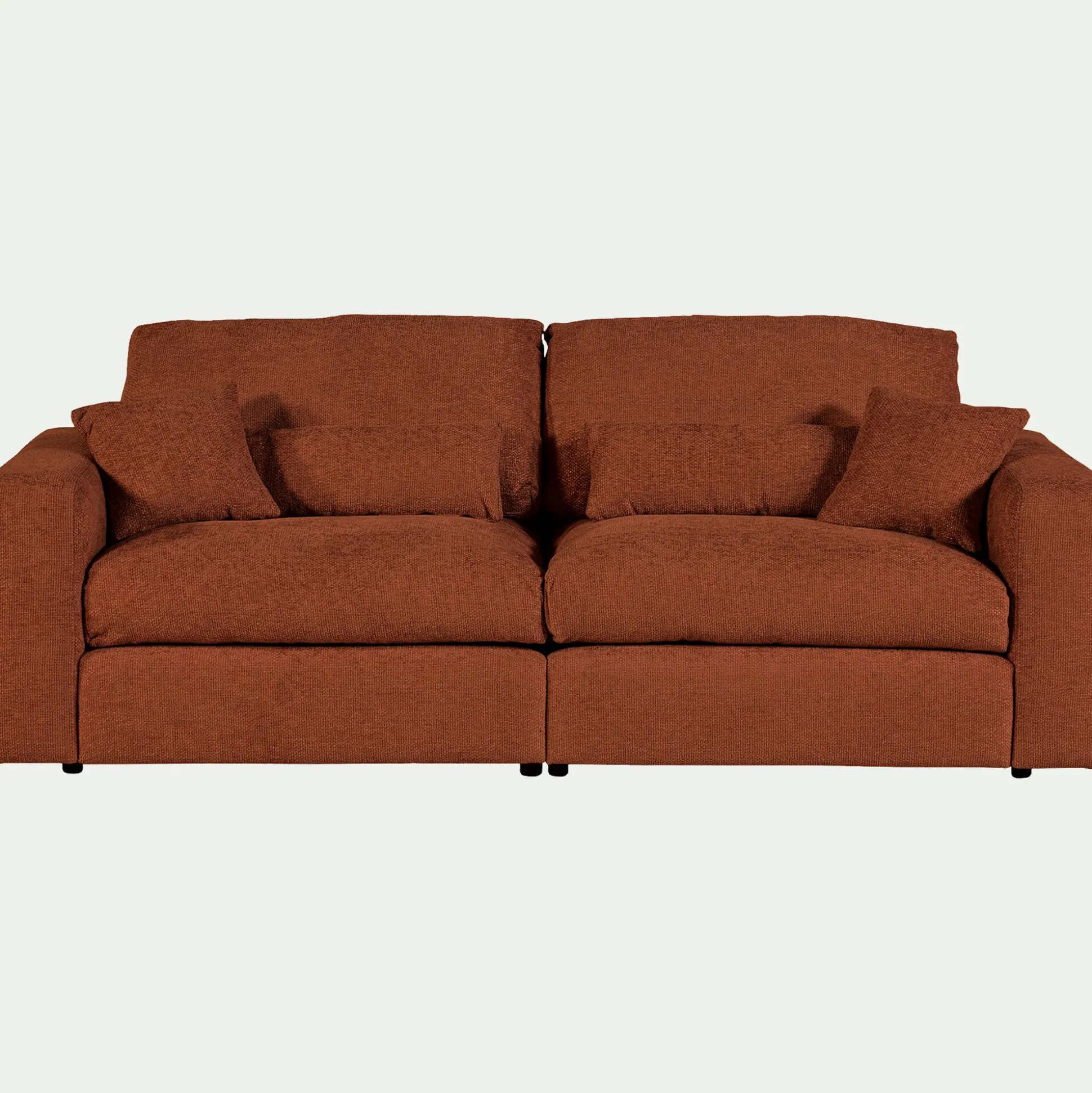Le canapé Piuma est idéal pour se prélasser dans votre salon. Avec ses grandes assises, ce canapé 5 places fixe en tissu chenille vous offre un confort exceptionnel. Il vous permet de vous détendre au coeur de coussins moelleux qui vous font sentir dans un nuage de douceur, une sensation renforcée par son tissu délicat. Vous pourrez ainsi recevoir famille et amis à partager des soirées conviviales lors d’un moment apaisant. Ce canapé fixe de couleur brun rustrel apporte également une touche design moderne et élégante à votre salon. Son tissu chenille donne un côté cocooning qui vous permet de transformer votre pièce en un espace chaleureux. Piuma fait ainsi rimer confort avec esthétisme et élégance.