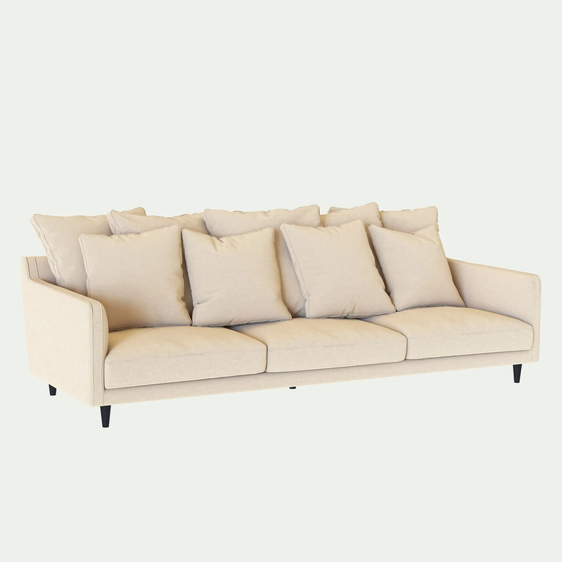 Fabriqué à la main par des passionnés italiens avec une tradition ancestrale dans le domaine du siège et de la tapisserie, ce canapé saura séduire les amateurs de déco. LENITA est une remarquable réinterprétation moderne d’un canapé, inspiré de l’époque somptueuse du Second Empire. Ce canapé fixe de 6 places en tissu joint, avec sa couleur beige roucas, est une façon idéale de décorer son salon d’une pièce raffiné qui vous permettra d’accueillir amis et famille. Installez-vous confortablement dans ce canapé moelleux, garni de plumes d’oies et venez vous détendre pour des moments de pur bien-être. Sa ligne, ses courbes, la préciosité de la matière veloutée inspirent le raffinement. Les multiples coussins repositionnables vous donneront le juste confort à tout moment de la journée. Son assise profonde et généreuse invite à la paresse. Il sera incontestablement la pièce qui vous fera passer de très bons moments cocooning.