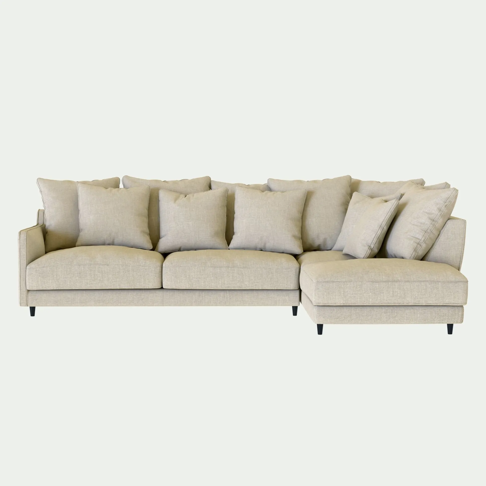 Fabriqué à la main par des passionnés italiens avec une tradition ancestrale dans le domaine du siège et de la tapisserie, ce canapé saura séduire les amateurs de déco. LENITA est une remarquable réinterprétation moderne d’un canapé, inspiré de l’époque somptueuse du Second Empire. Ce canapé avec angle droit convertible de 3 places en tissu mixte, avec sa couleur beige Alpilles, est une façon idéale de décorer son salon d’une pièce raffiné qui vous permettra d’accueillir amis et famille sur son couchage d’appoint. Installez-vous confortablement dans ce canapé moelleux, garni de plumes d’oies et venez vous détendre pour des moments de pur bien-être. Sa ligne, ses courbes, la préciosité de la matière veloutée inspirent le raffinement. Les multiples coussins repositionnables vous donneront le juste confort à tout moment de la journée. Son assise profonde et généreuse invite à la paresse. Il sera incontestablement la pièce qui vous fera passer de très bons moments cocooning.