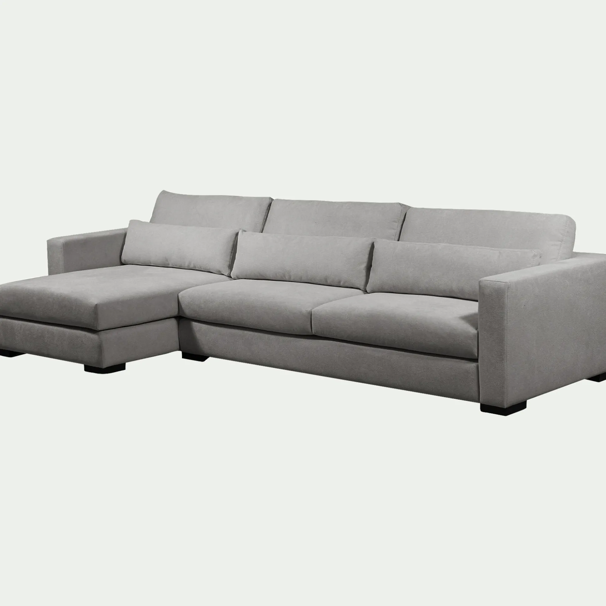 Spacieux et raffiné, le canapé d’angle Batis avec angle à gauche transforme le salon en un espace accueillant et élégant. Sa chaise longue offre un espace idéal pour s’allonger et savourer un véritable instant de détente. Revêtu d’un tissu natté résistant, il allie esthétique intemporelle et durabilité. Son coloris gris clair se marie à différents styles de décoration et d’accessoires, comme un plaid et des coussins. Conçu pour durer, ce canapé fixe repose sur une structure en bois massif, garantissant solidité et stabilité. Il s’impose comme l’élément central du séjour, invitant au partage et à la relaxation.