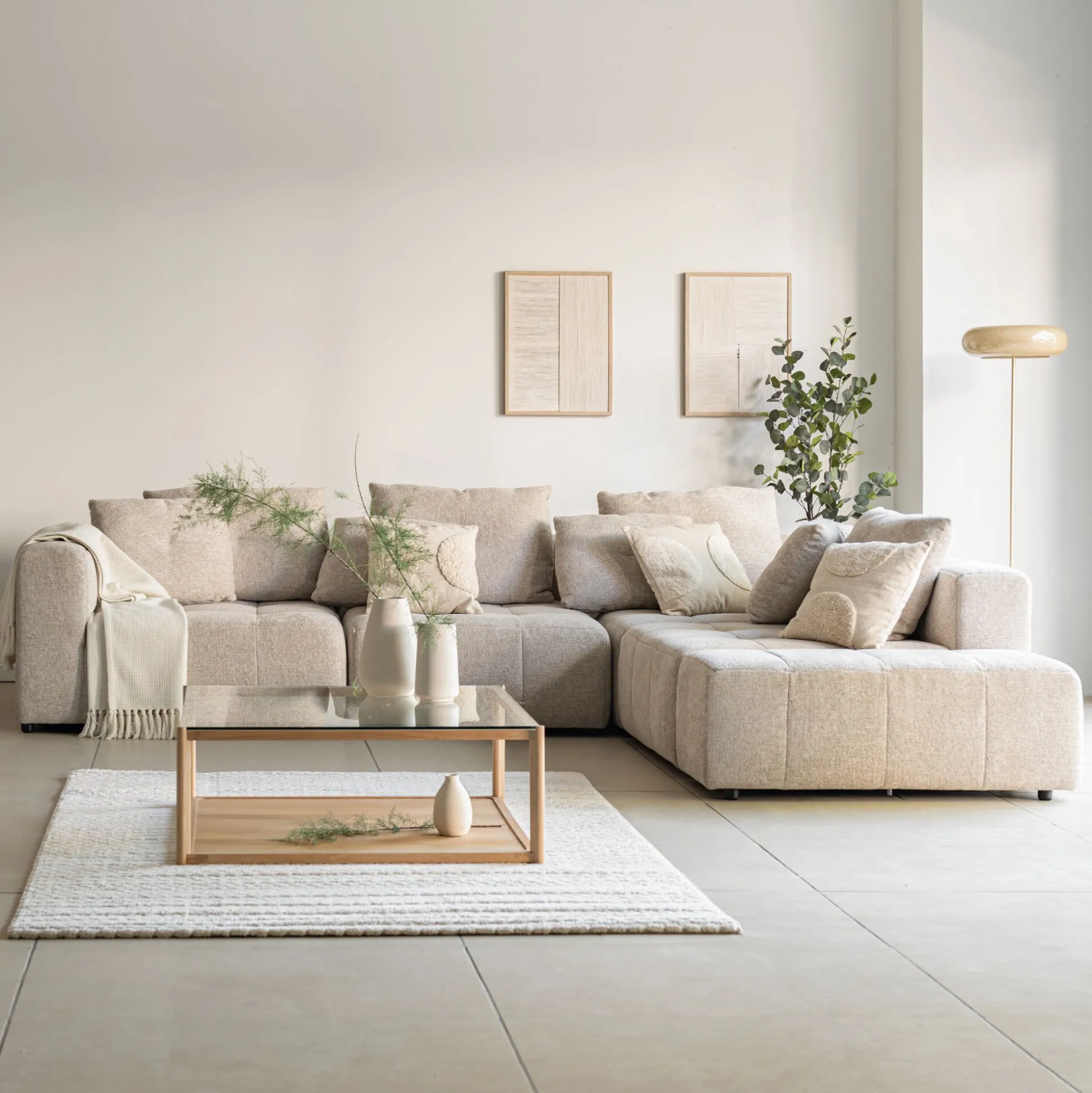 - Angle gauche de canapé modulable en tissu Benjo – beige roucas