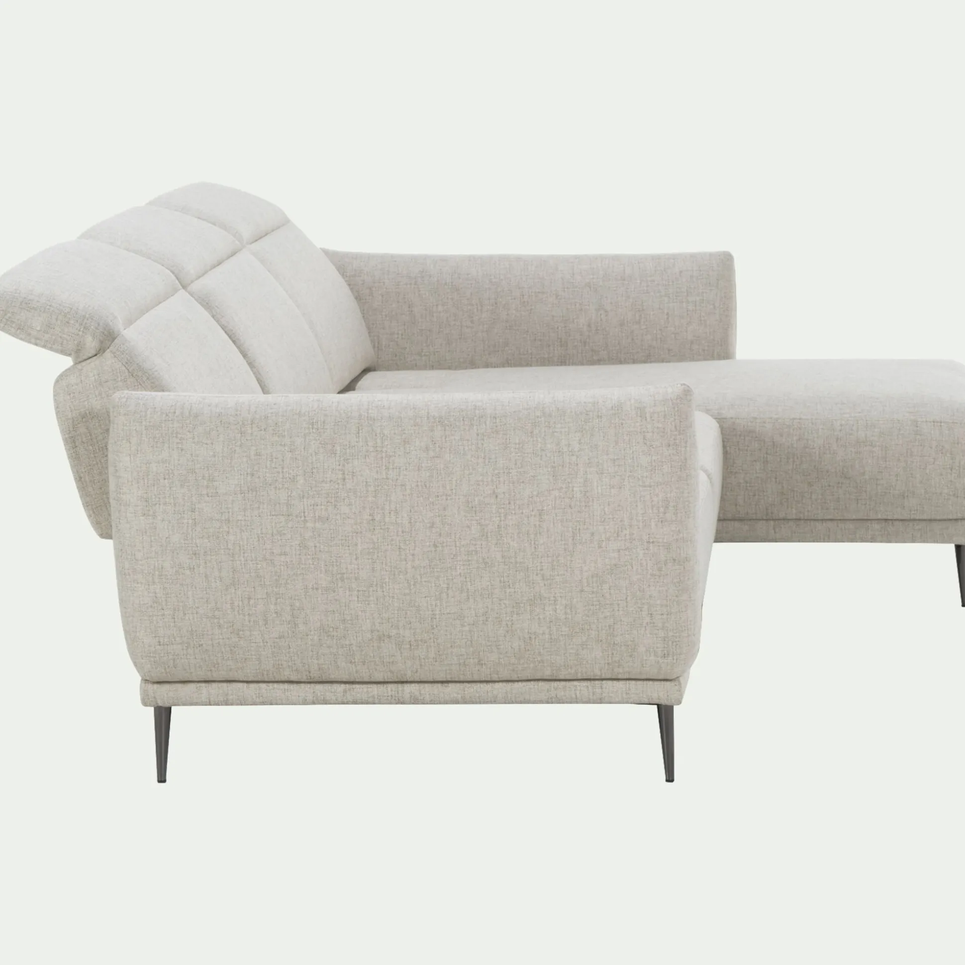 Optez pour ce canapé d’angle droit 3 places fabriqué en Roumanie. Il arbore un design sobre et chic, ainsi qu’une couleur intemporelle beige roucas qui s’accordera avec charme à la décoration de votre salon. Du confort, une assise profonde et généreuse, grâce à un système de dossier qui peut reculer, Marko est un beau canapé qui conviendra parfaitement comme pièce maîtresse de votre pièce de vie. De plus, vous pouvez relever les têtières pour pouvoir être bien installé devant la télé ou lire un livre. Un canapé à la fois déco et d’une qualité exceptionnelle, c’est un meuble qui saura vous séduire.