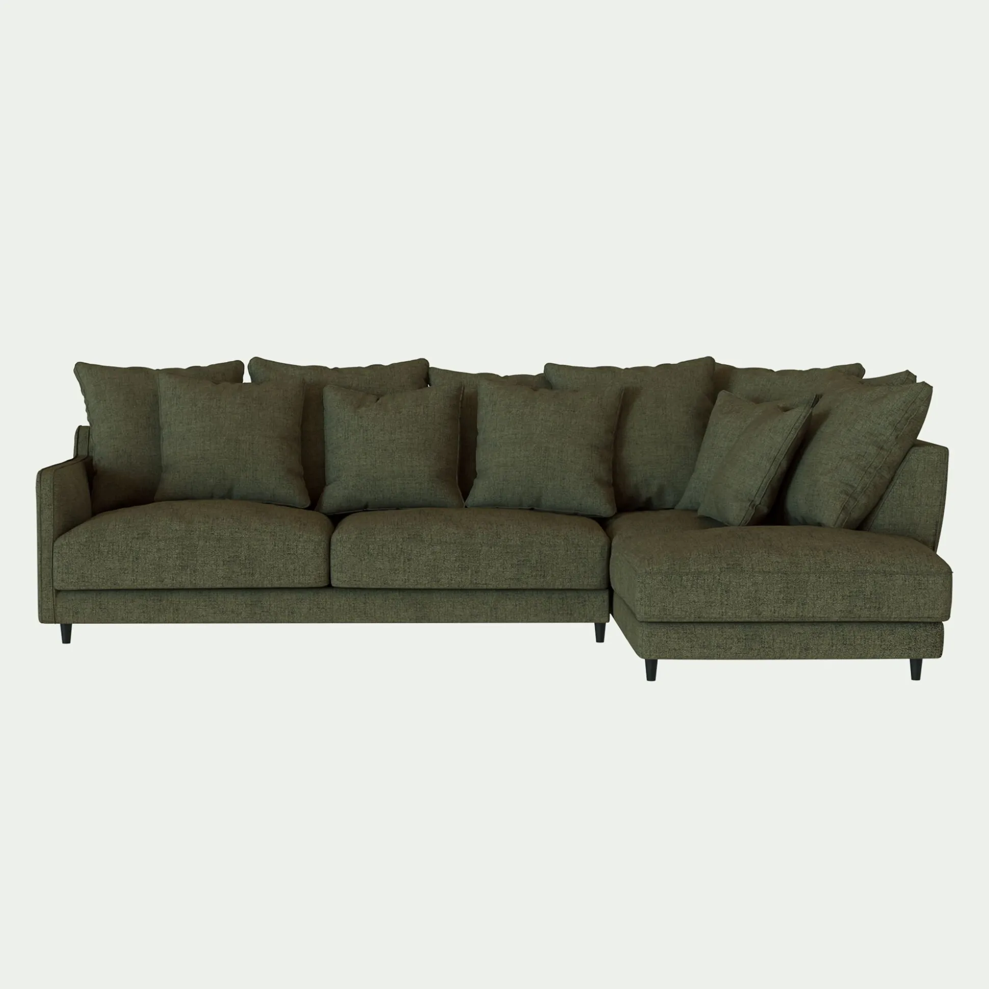 Un canapé d’angle qui incarne le savoir-faire unique et traditionnel des Italiens. Son look est inspiré du second Empire, l’époque où Napoléon III demande au baron Haussmann de donner un nouveau visage à Paris. Un style luxueux, une assise profonde et généreuse, accompagnée d’épais coussins, Lenita est un canapé majestueux et intemporel. Fabriqué à Farra di Soligo au nord de Venise, il est garni de plumes d’oie. Un confort moelleux pour se lover dans un confort incomparable. Sa structure en bois est renforcée par du sapin massif pour une grande longévité. Entièrement déhoussable, vous pourrez facilement le faire nettoyer par un professionnel. Lenita ce sont des lignes élégantes, sublimées par des finitions réalisée à la main. Un canapé déco en tissu joint d’une qualité exceptionnelle et un coloris vert cèdre qui vous invite au coeur des forêts méditerranéennes.