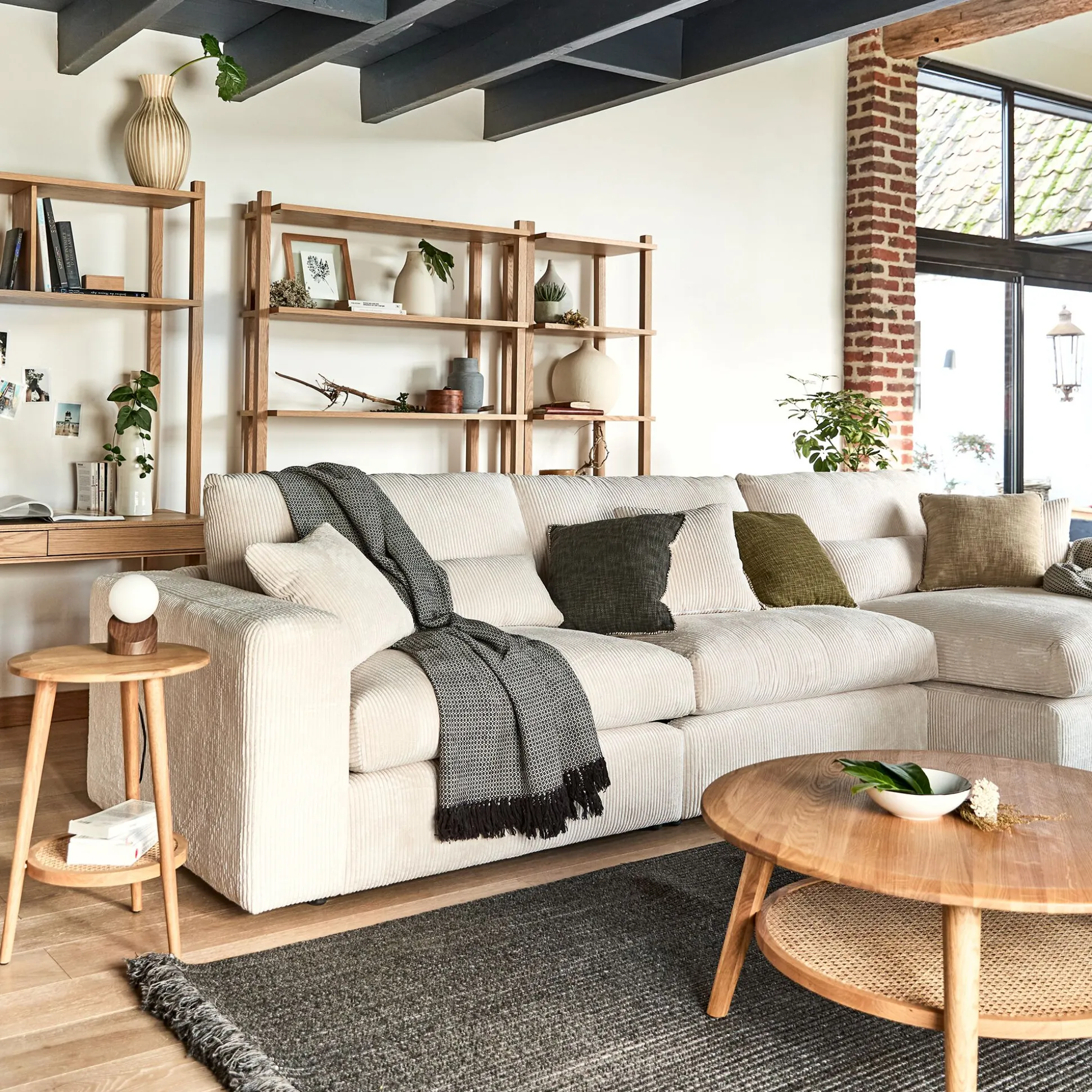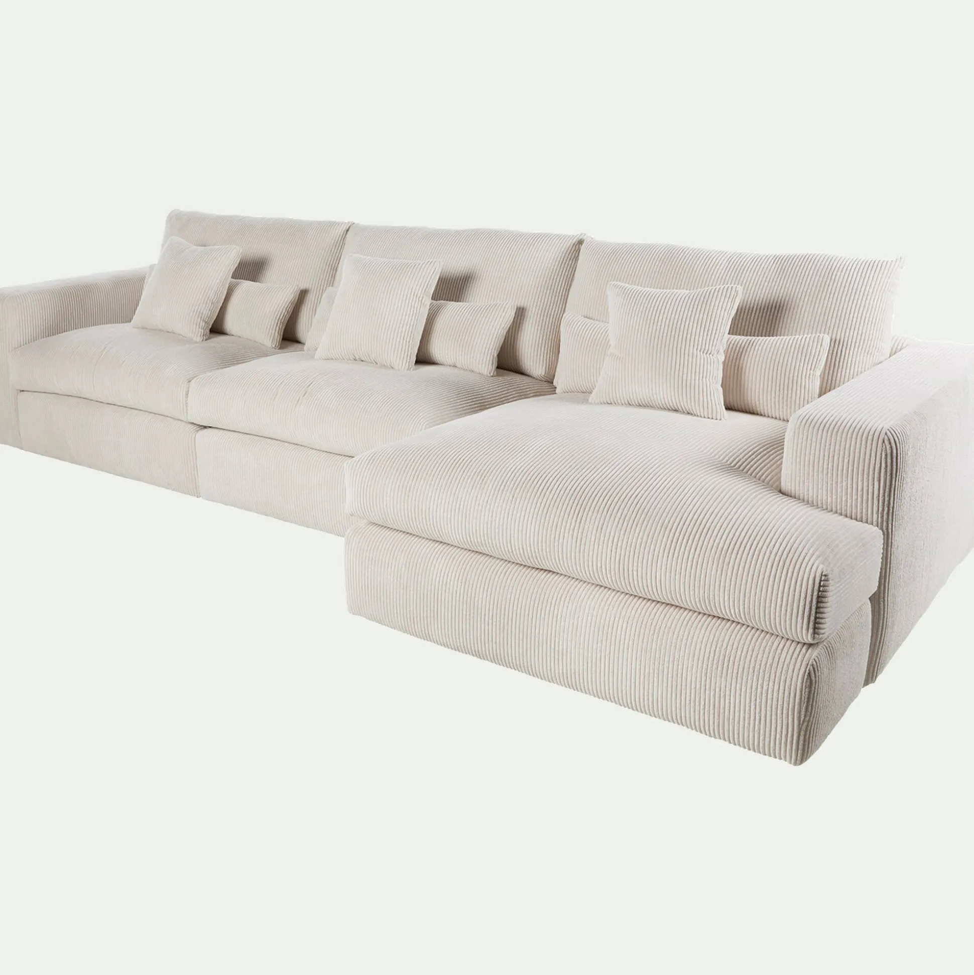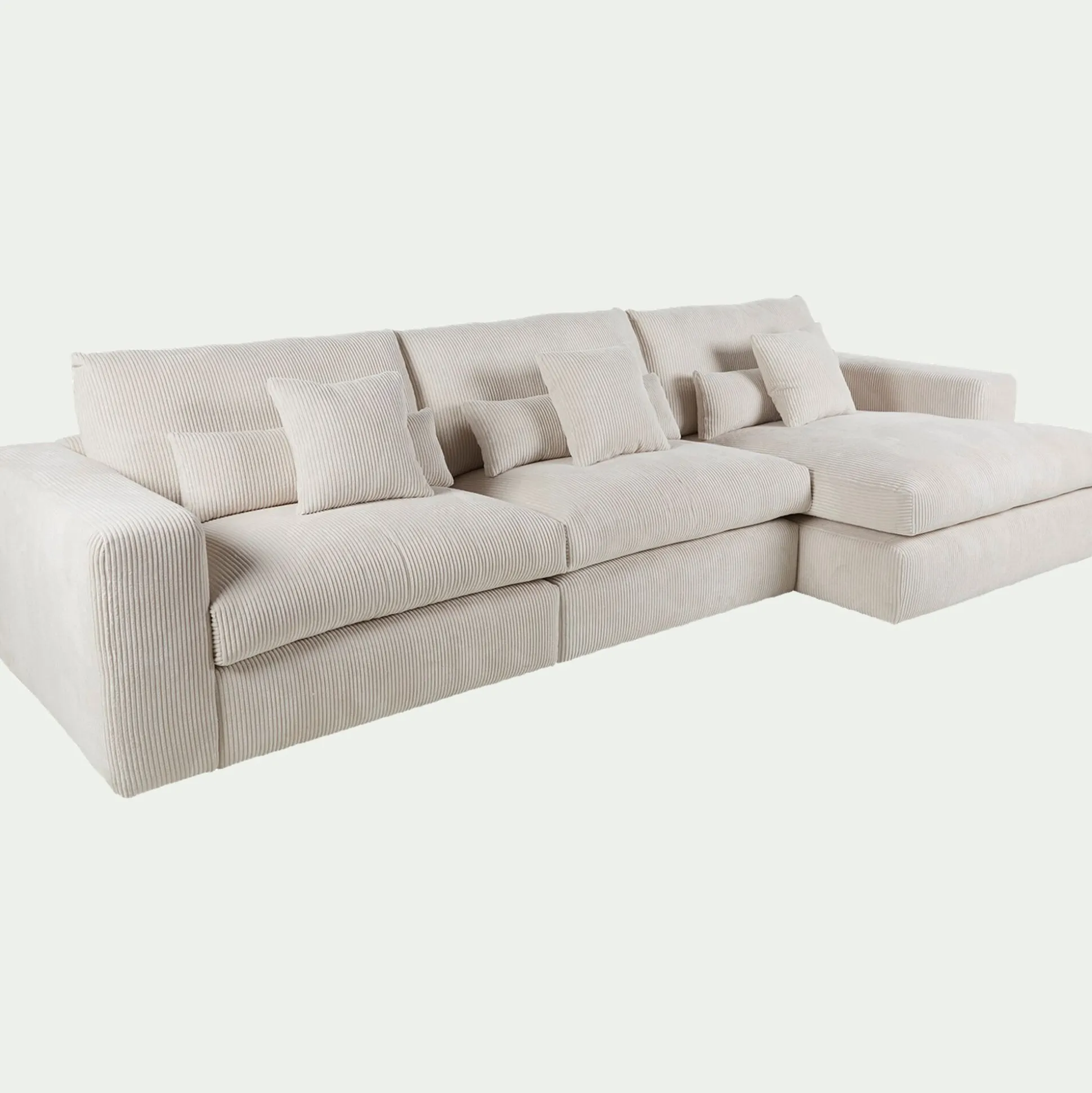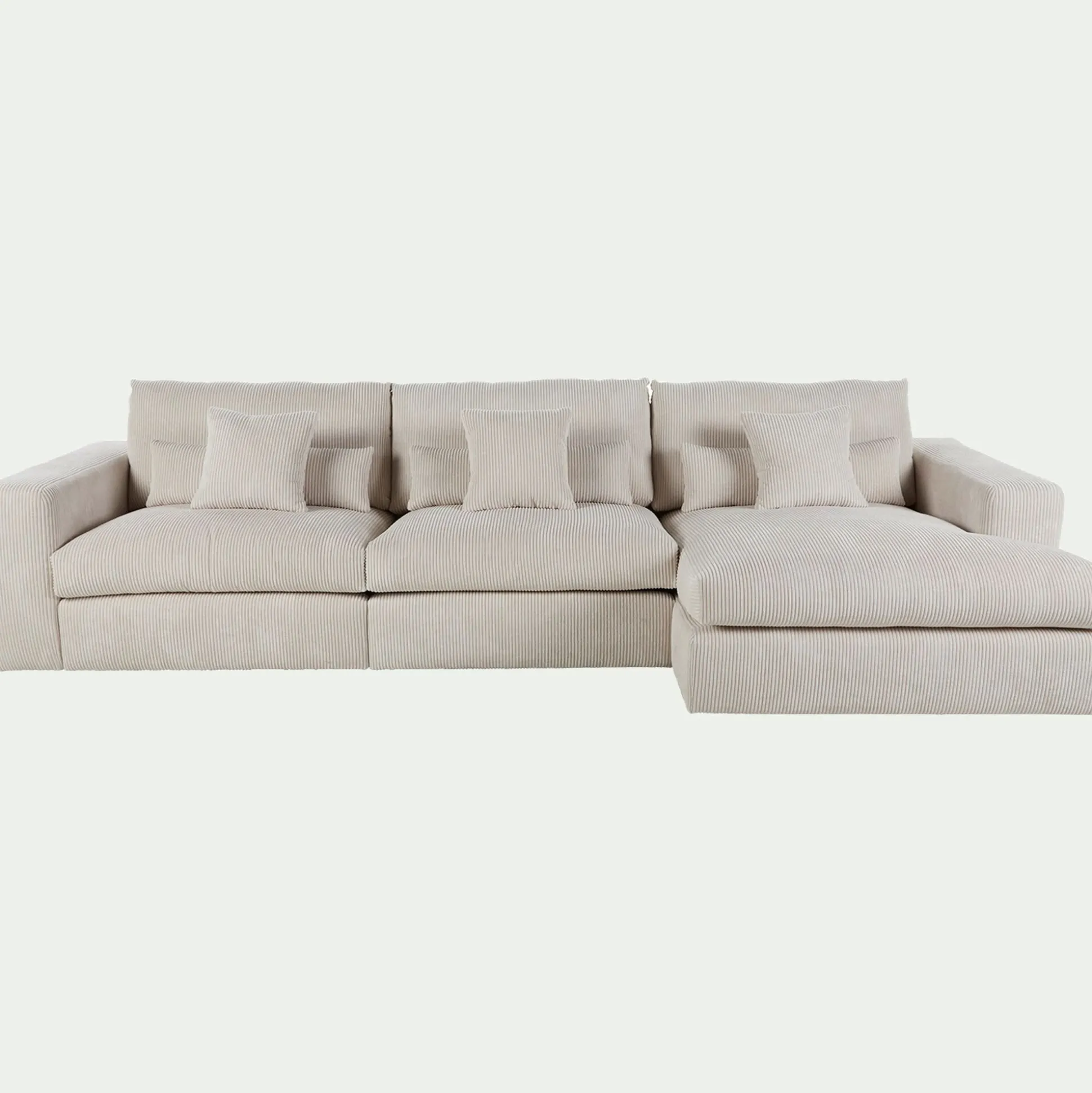 Canapé d’angle droit fixe en velours côtelé – beige roucas