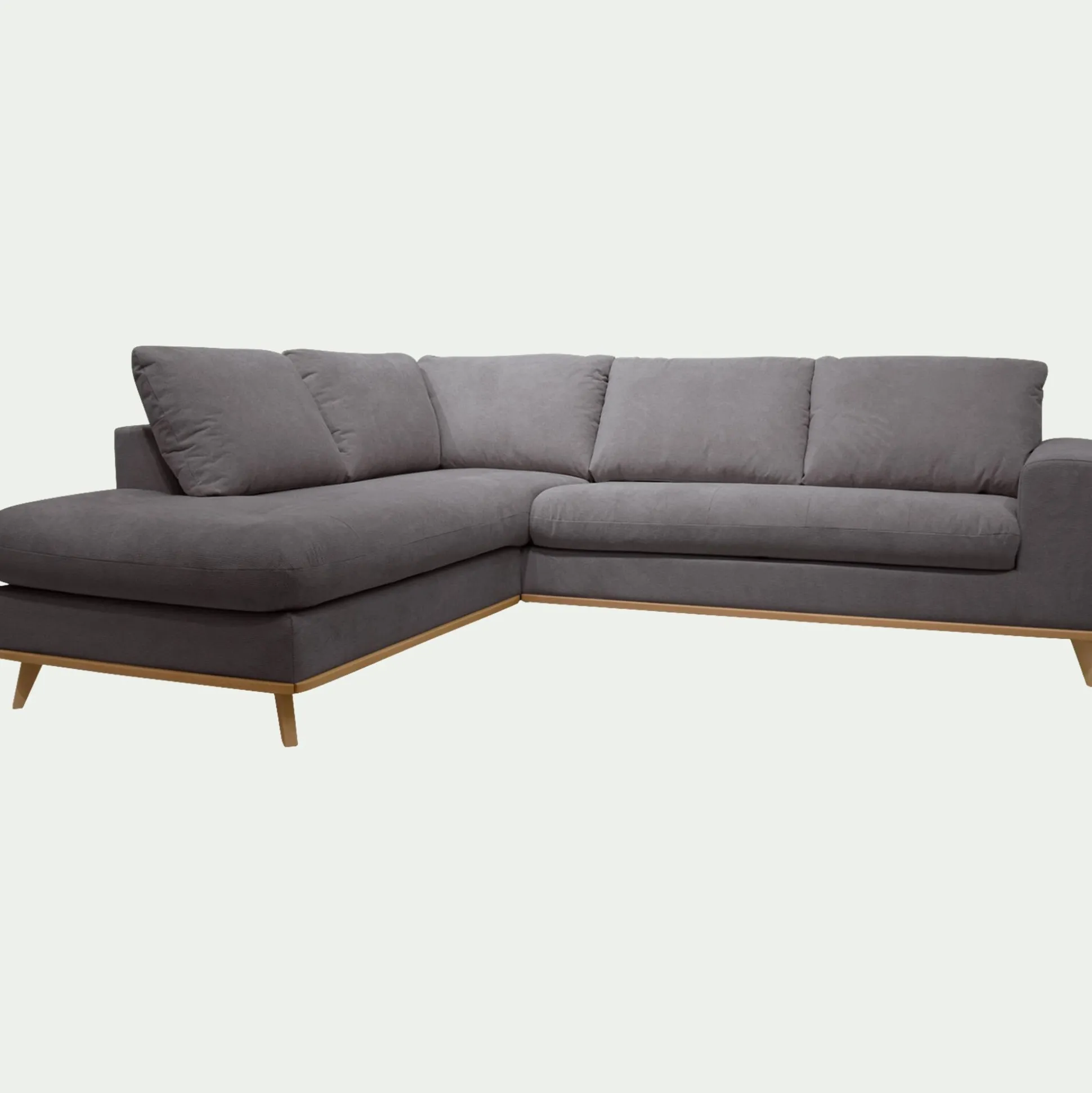 Le canapé d’angle convertible Capia allie confort, style et praticité. De jour, il offre une assise spacieuse pour 5 personnes grâce à son angle à gauche. Ce canapé est alors revêtu d’un tissu Crown dans notre coloris gris restanque, profond et indémodable. Son tissage certifié Oeko-Tex apporte douceur et résistance, parfait pour une utilisation quotidienne. Le soir, il se transforme en un couchage d’appoint de 120×190 cm grâce à un mécanisme d’ouverture rapide et facile, intégrant un sommier et un matelas pour un confort optimal. Son design repose sur une structure en pin massif et des pieds en hêtre massif, gage de solidité et de durabilité. Les coussins de dos déhoussables facilitent l’entretien. Une fabrication française qui conjugue esthétique et fonctionnalité.