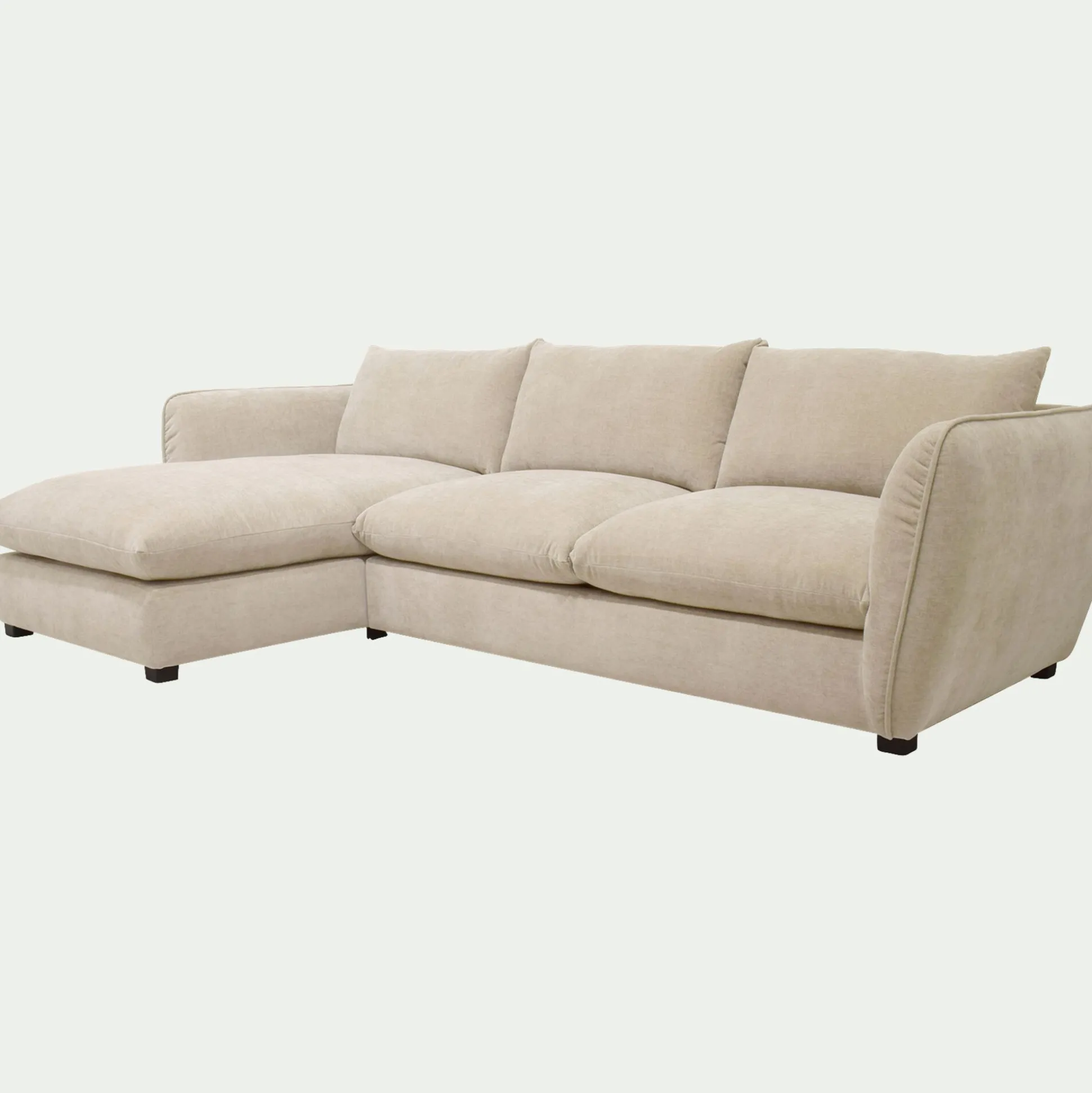 De jour comme de nuit, ce canapé d’angle convertible avec angle à gauche s’adapte à toutes les envies. Avec son tissu blanc écru, il adoucit le salon et lui insuffle une atmosphère cocooning et un style bohème. Son assise profonde et sa méridienne invitent à la détente, offrant un confort idéal pour les moments de repos ou de convivialité. Son design généreux et cosy en fait une pièce maîtresse qui réchauffe l’espace avec élégance. Et lorsque l’heure du coucher approche, ce canapé d’angle se transforme en couchage occasionnel en un clin d’œil. Grâce à son système express, il suffit de tirer pour dévoiler un sommier avec matelas de 140×190 cm, prêt à accueillir les invités pour la nuit. Plus qu’un simple canapé en tissu, c’est un véritable allié du quotidien, alliant style et fonctionnalité sans compromis.
