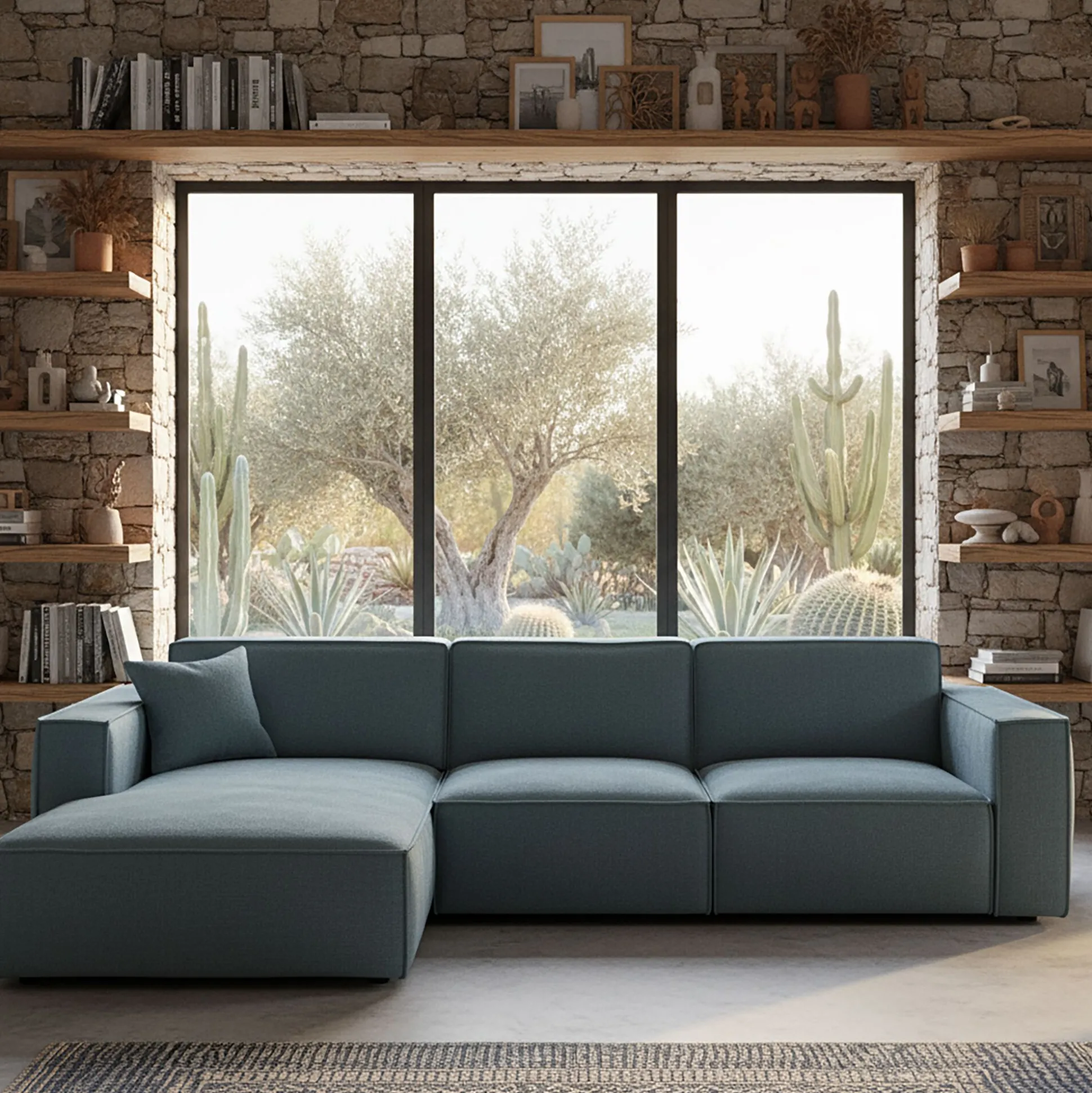 Le canapé d’angle Kubo avec méridienne à gauche est pensé pour offrir un espace accueillant et chaleureux dans le salon. Habillé de tissu genesis, à la fois doux et résistant, il allie confort et praticité au quotidien. Son coloris bleu, vif mais apaisant, s’intègre facilement dans toutes les ambiances et habille le séjour d’une touche de douceur. Fixe et généreux, ce canapé se distingue par une silhouette contemporaine qui structure l’espace avec élégance. Fabriqué en Ukraine, il conjugue style et confort pour accompagner les instants de détente comme les moments partagés.