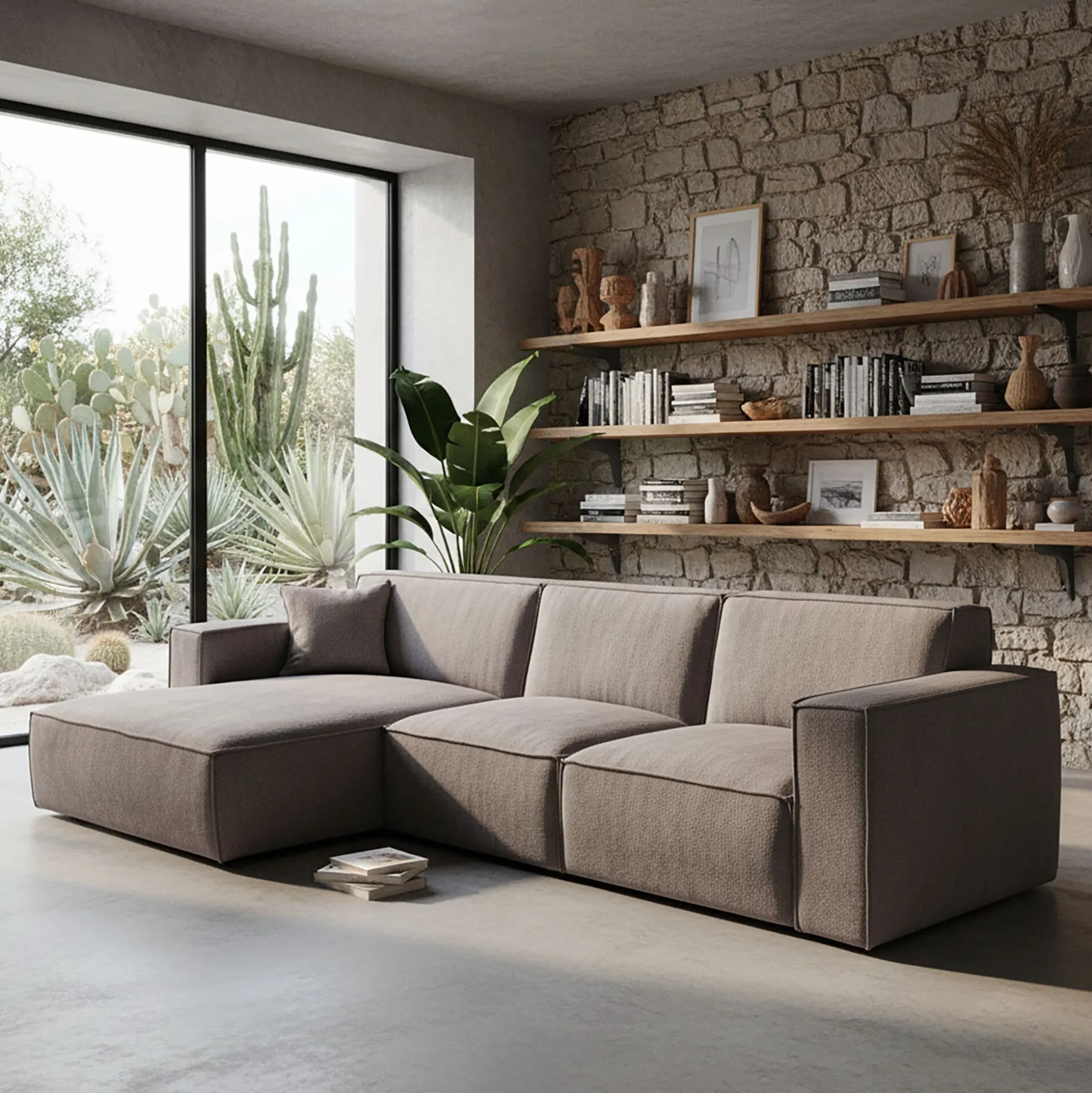 Le canapé d’angle Kubo avec méridienne à gauche est pensé pour offrir un espace accueillant et chaleureux dans le salon. Habillé de tissu genesis, à la fois doux et résistant, il allie confort et praticité au quotidien. Son coloris gris borie, clair et polyvalent, s’intègre facilement dans toutes les ambiances et habille le séjour d’une touche de douceur. Fixe et généreux, ce canapé se distingue par une silhouette contemporaine qui structure l’espace avec élégance. Fabriqué en Ukraine, il conjugue style et confort pour accompagner les instants de détente comme les moments partagés.