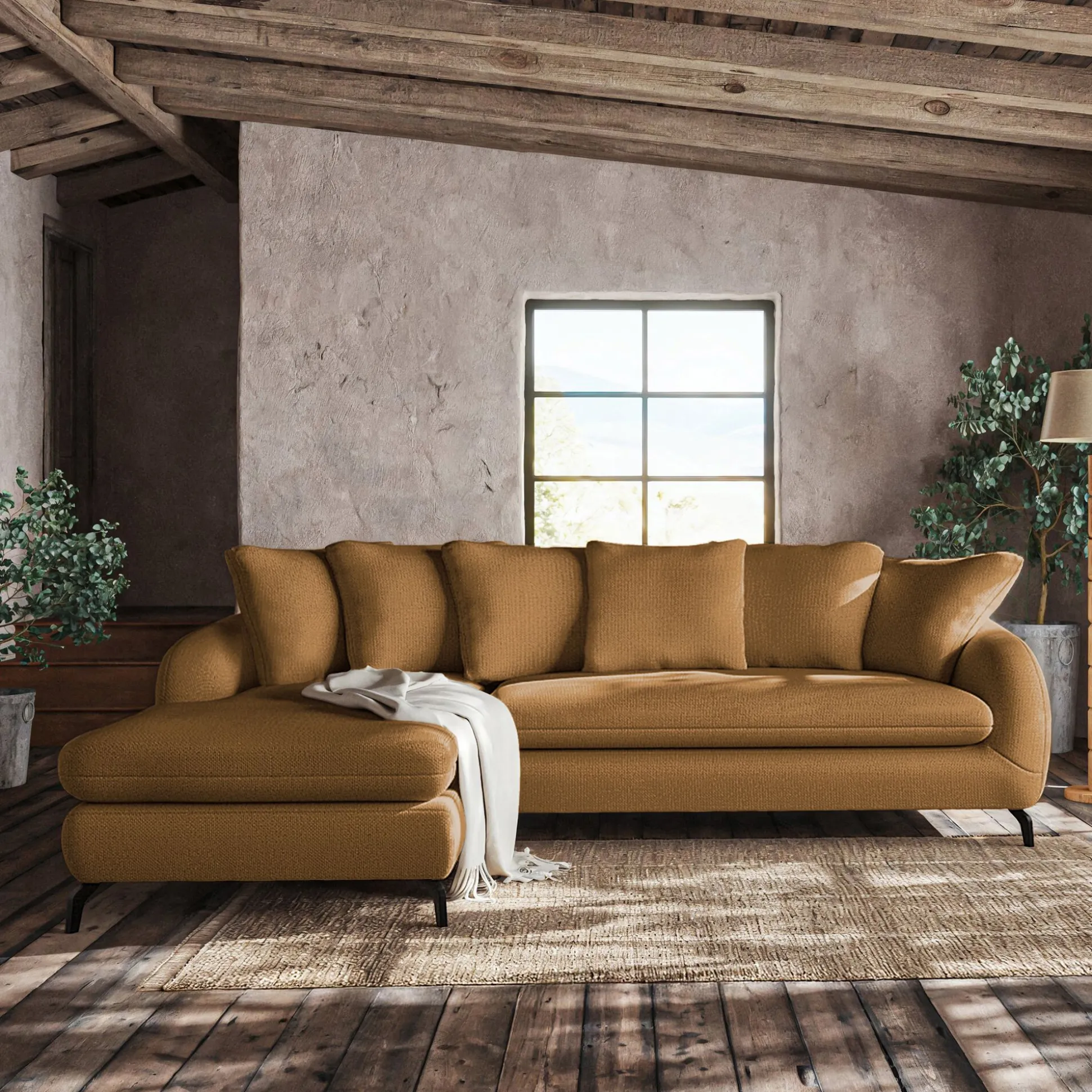 Canapé d’angle gauche fixe en tissu tramé – bronze