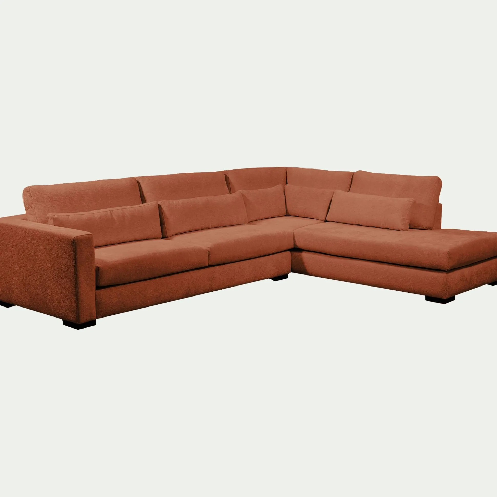 Ce canapé d’angle avec méridienne à droite transforme votre intérieur en un espace bien-être. Son format généreux accueille toute la famille ou permet de s’allonger entièrement après une journée de travail. Revêtu d’un tissu marron à la fois chaleureux et moderne, il séduit par sa texture douce et résistante. Son assise profonde repose sur une structure en bois massif et des ressorts qui garantissent un maintien souple et durable. Pratique, ses coussins de dossier et d’assise sont déhoussables pour un entretien facilité. Ce grand canapé fixe insuffle du caractère à la pièce et s’impose comme un allié incontournable des instants de détente et de convivialité.