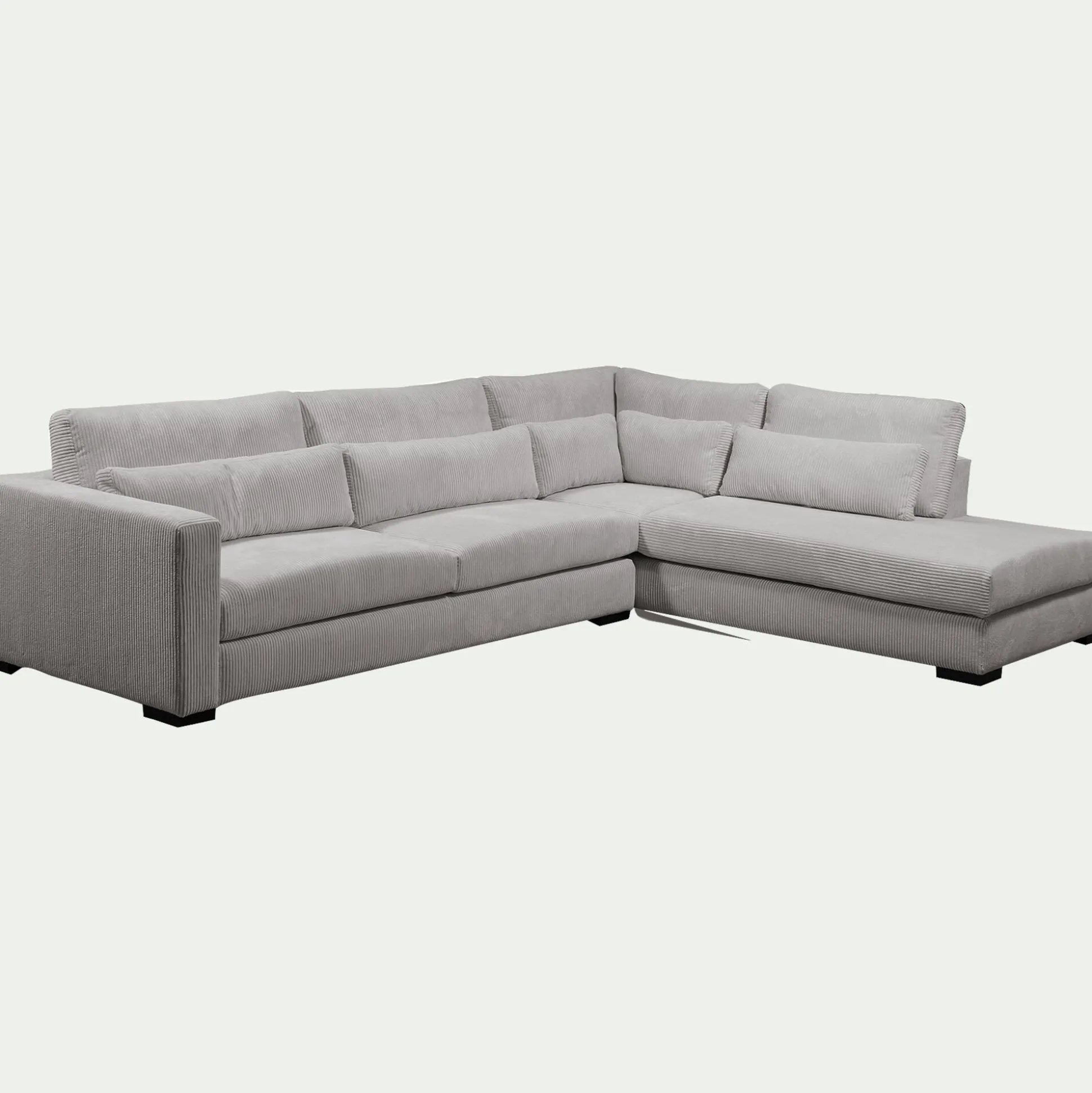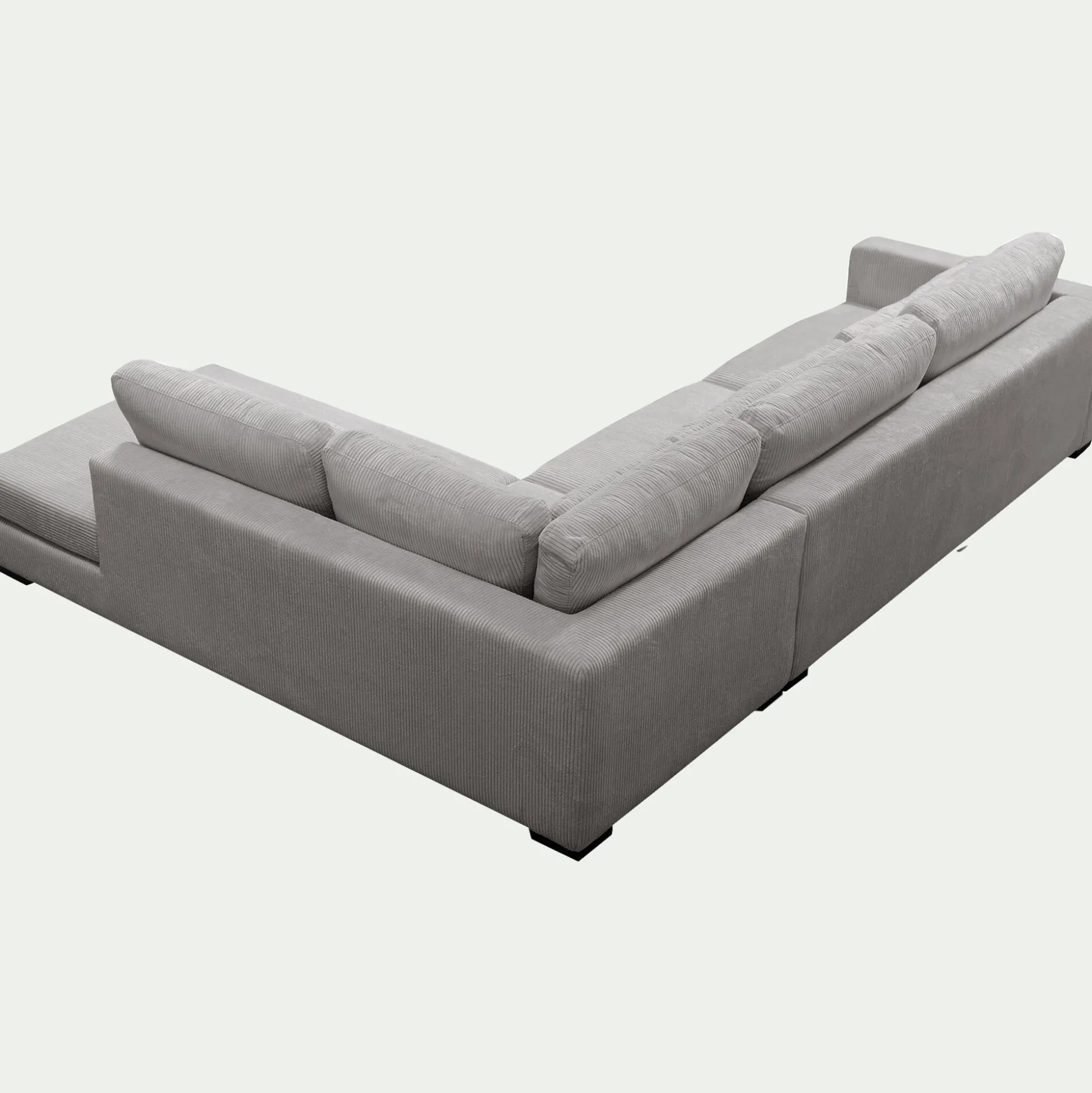 Ce canapé d’angle avec méridienne à droite transforme le salon en un véritable espace bien-être. Son grand format accueille toute la famille ou permet de s’allonger entièrement pour une détente absolue. Revêtu d’un velours côtelé dans un coloris gris borie, il séduit par son toucher doux et soyeux, reflétant délicatement la lumière pour une touche d’élégance. Son assise profonde repose sur une structure en bois massif et des ressorts qui garantissent un maintien souple et durable. Pratique, ses coussins de dossier et d’assise sont déhoussables pour un entretien facilité. Généreux et élégant, ce grand canapé fixe insuffle du caractère à la pièce et s’impose comme un allié incontournable des instants de détente et de convivialité.