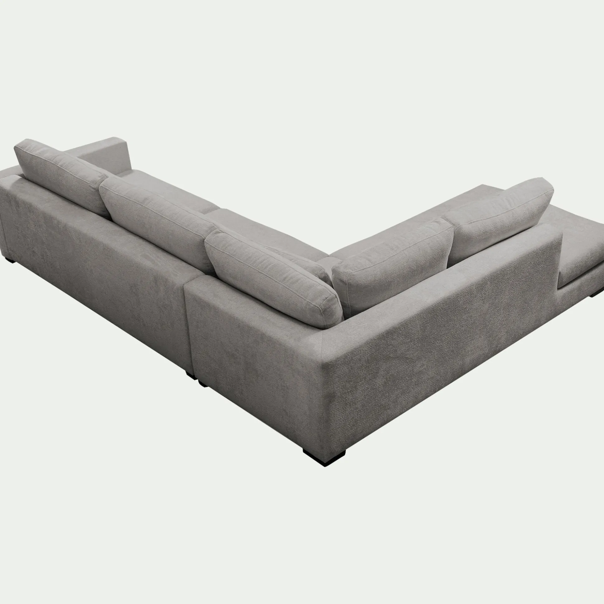 Ce canapé d’angle avec méridienne à gauche fait de votre salon un véritable havre de détente. Son format spacieux permet d’accueillir toute la famille ou de s’étendre confortablement après une longue journée. Habillé d’un tissu gris à la fois contemporain et raffiné, ce canapé fixe charme par sa texture douce et résistante. Son assise profonde repose sur une structure en bois massif et des ressorts, assurant un confort durable et un soutien équilibré. Conçu pour le quotidien, ses coussins de dossier et d’assise sont entièrement déhoussables, facilitant l’entretien. Imposant et élégant, ce grand canapé gris apporte du caractère à la pièce et devient le compagnon idéal des moments de convivialité et de relaxation.