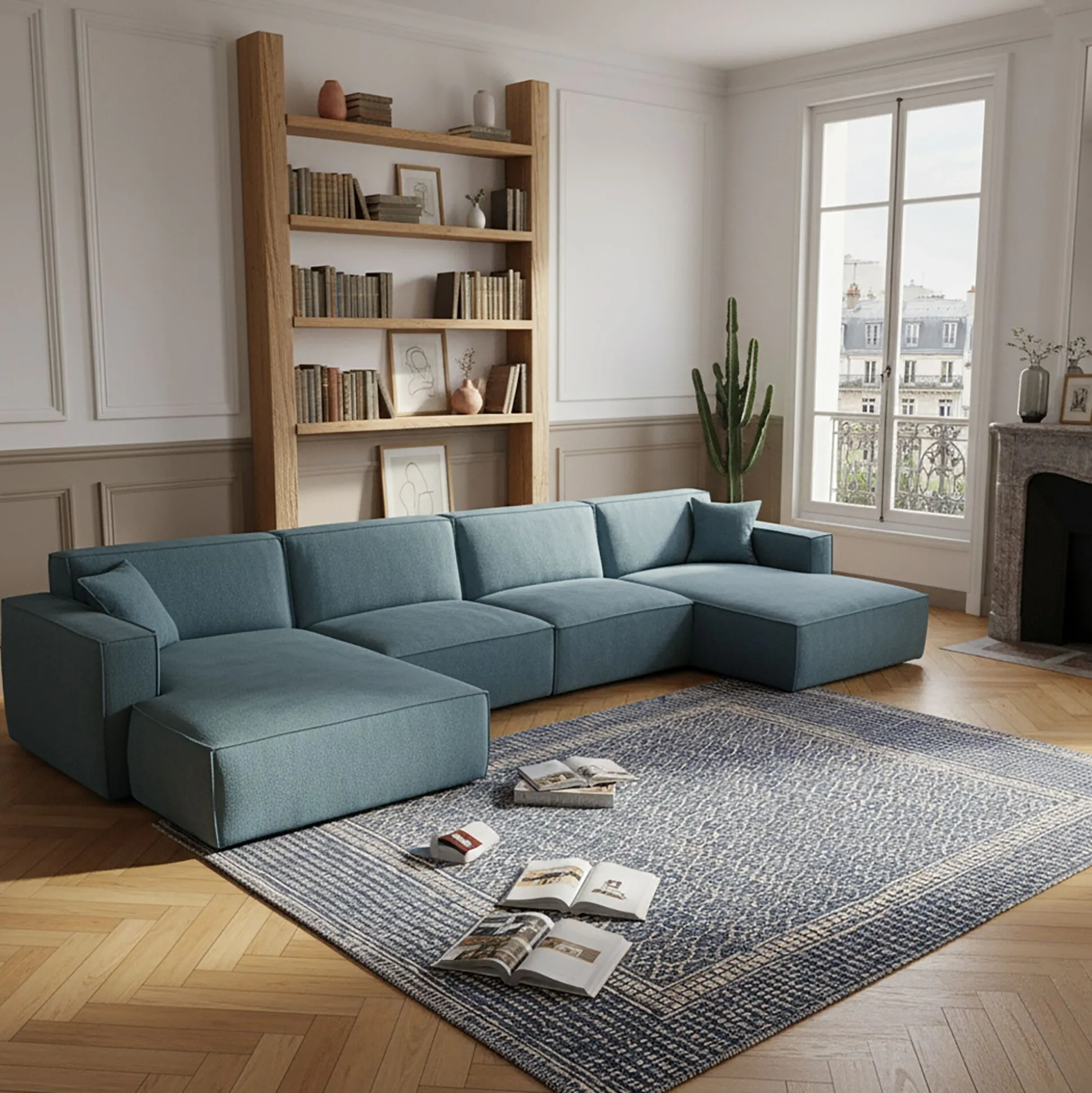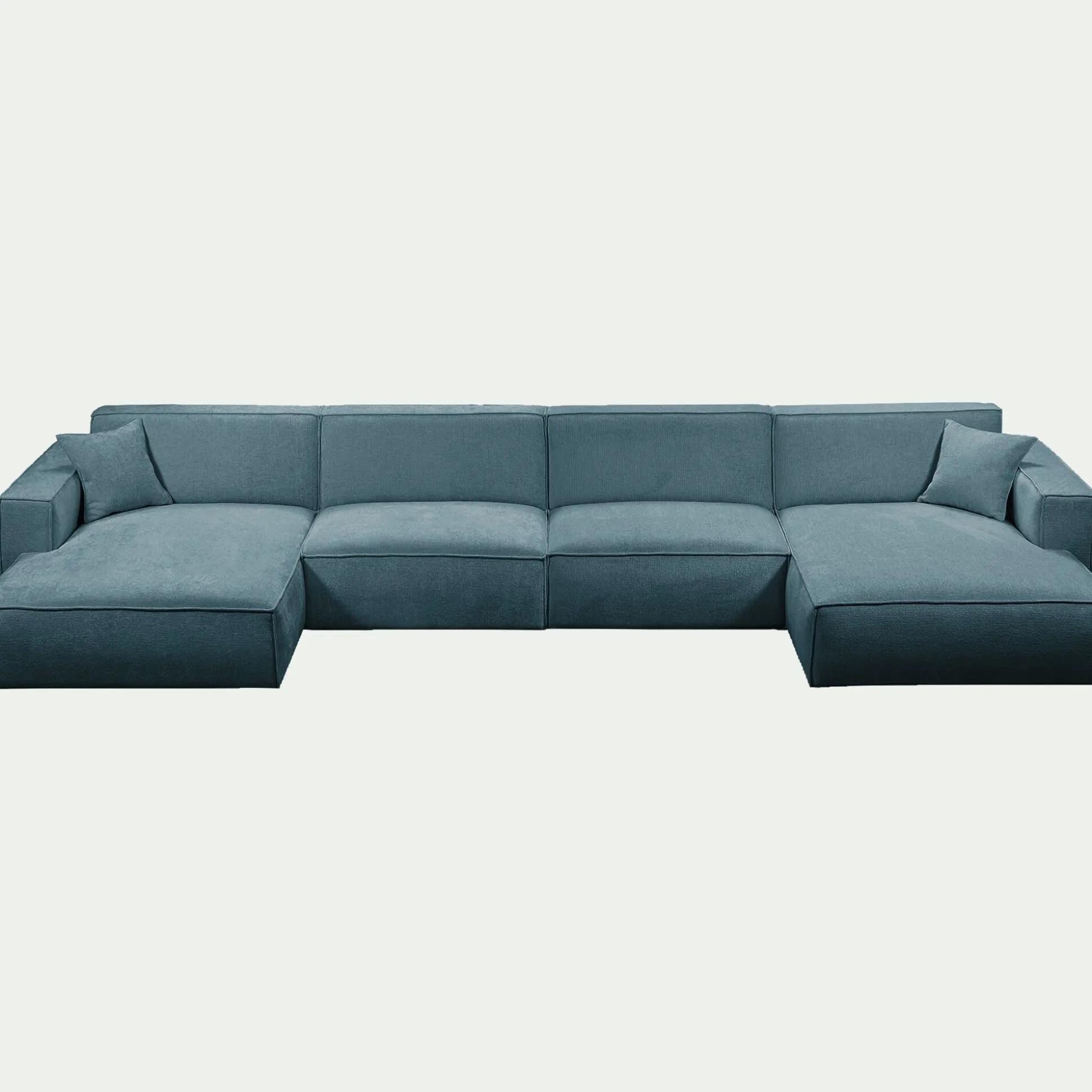 Ce joli canapé d’angle panoramique est parfait pour sublimer votre intérieur tout en vous permettant de vous prélasser. Avec ses formes rectangulaires définies, ce canapé fixe donne un côté contemporain à votre salon. Il est fabriqué en Ukraine par des experts afin de vous offrir un canapé à la confection européenne avec des matériaux qualitatifs. Confortable et extrêmement moelleux, il vous permet de recevoir famille et amis sur une assise généreuse. Son tissu de couleur bleu apporte de la luminosité à votre pièce pour une décoration chic et moderne.