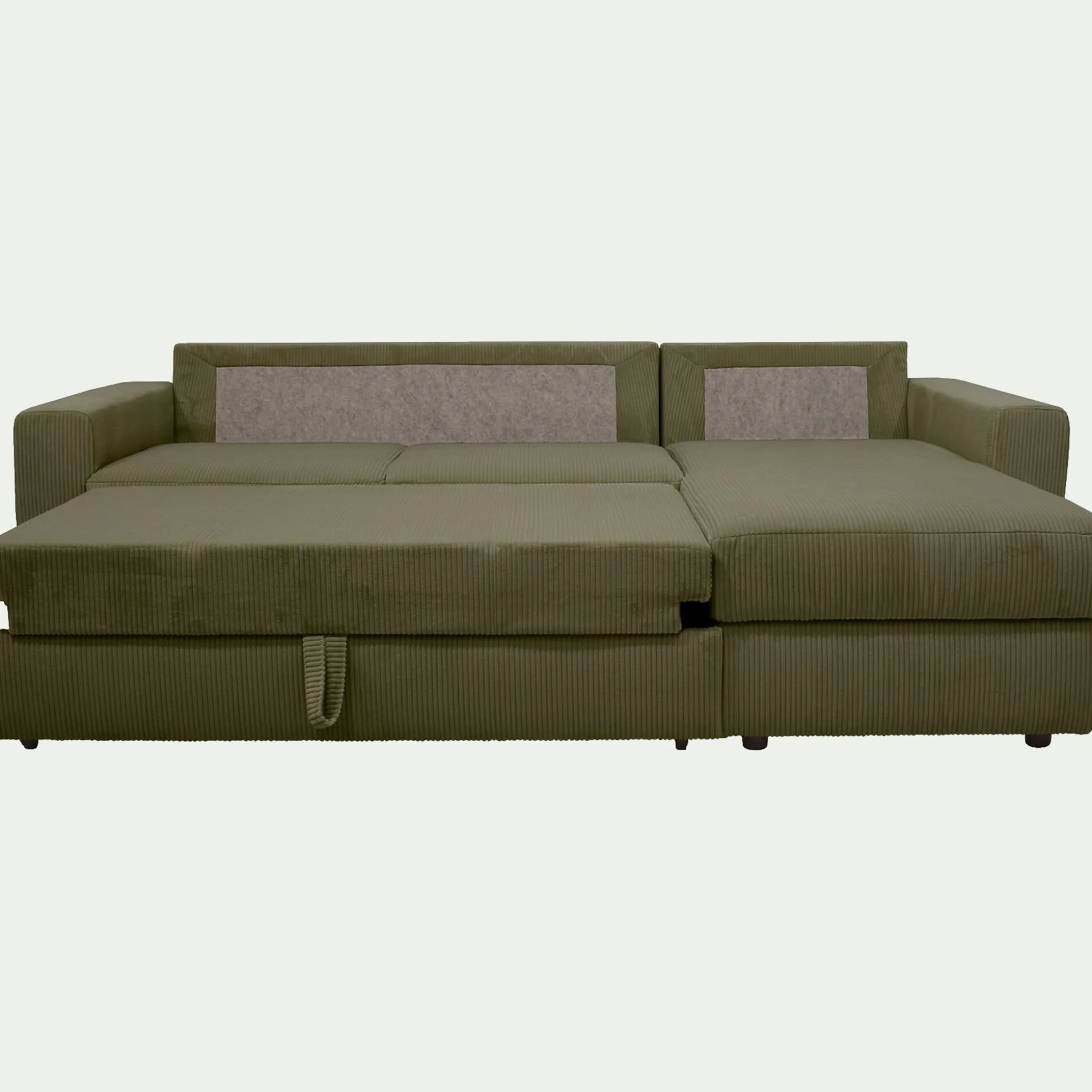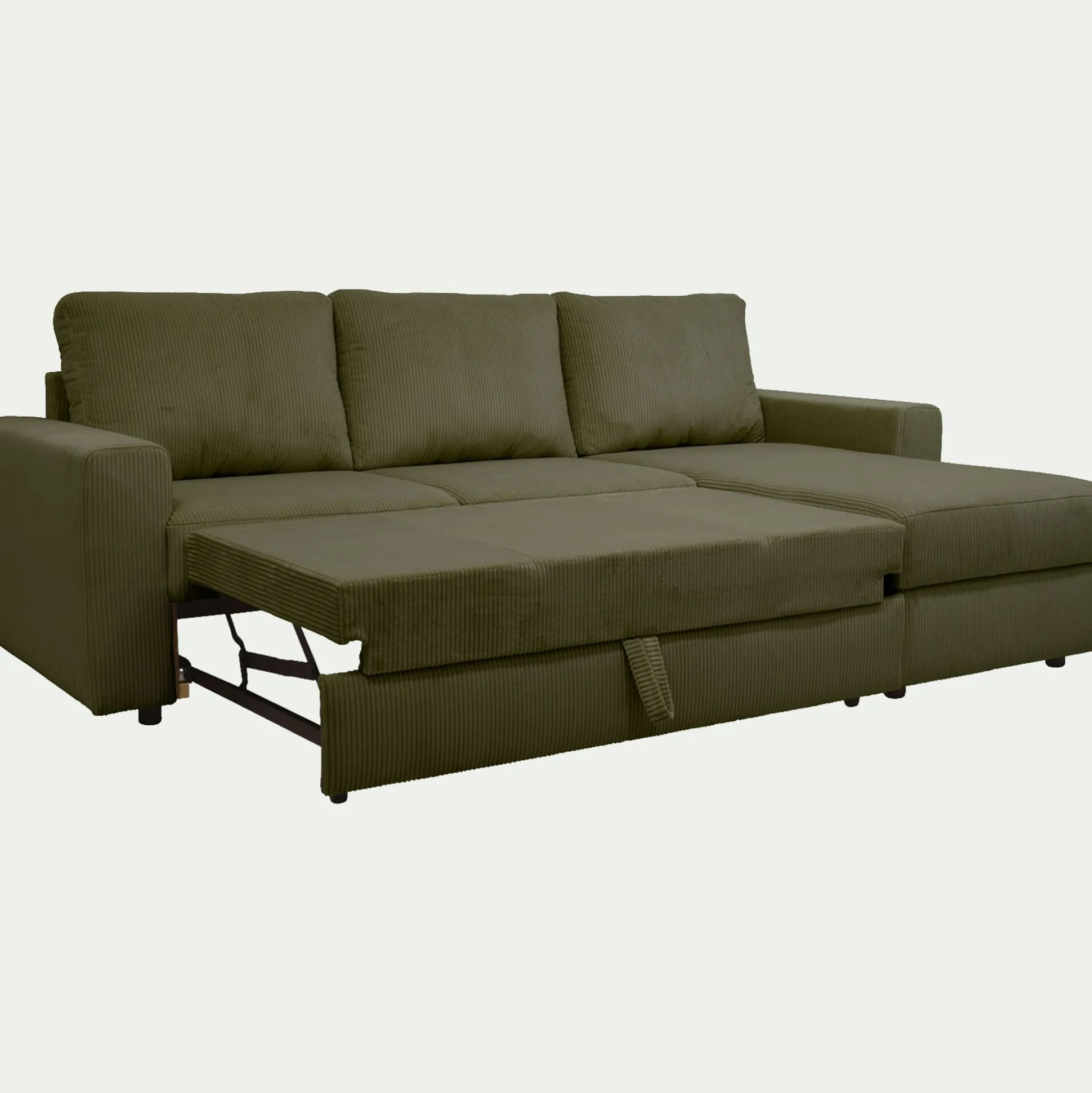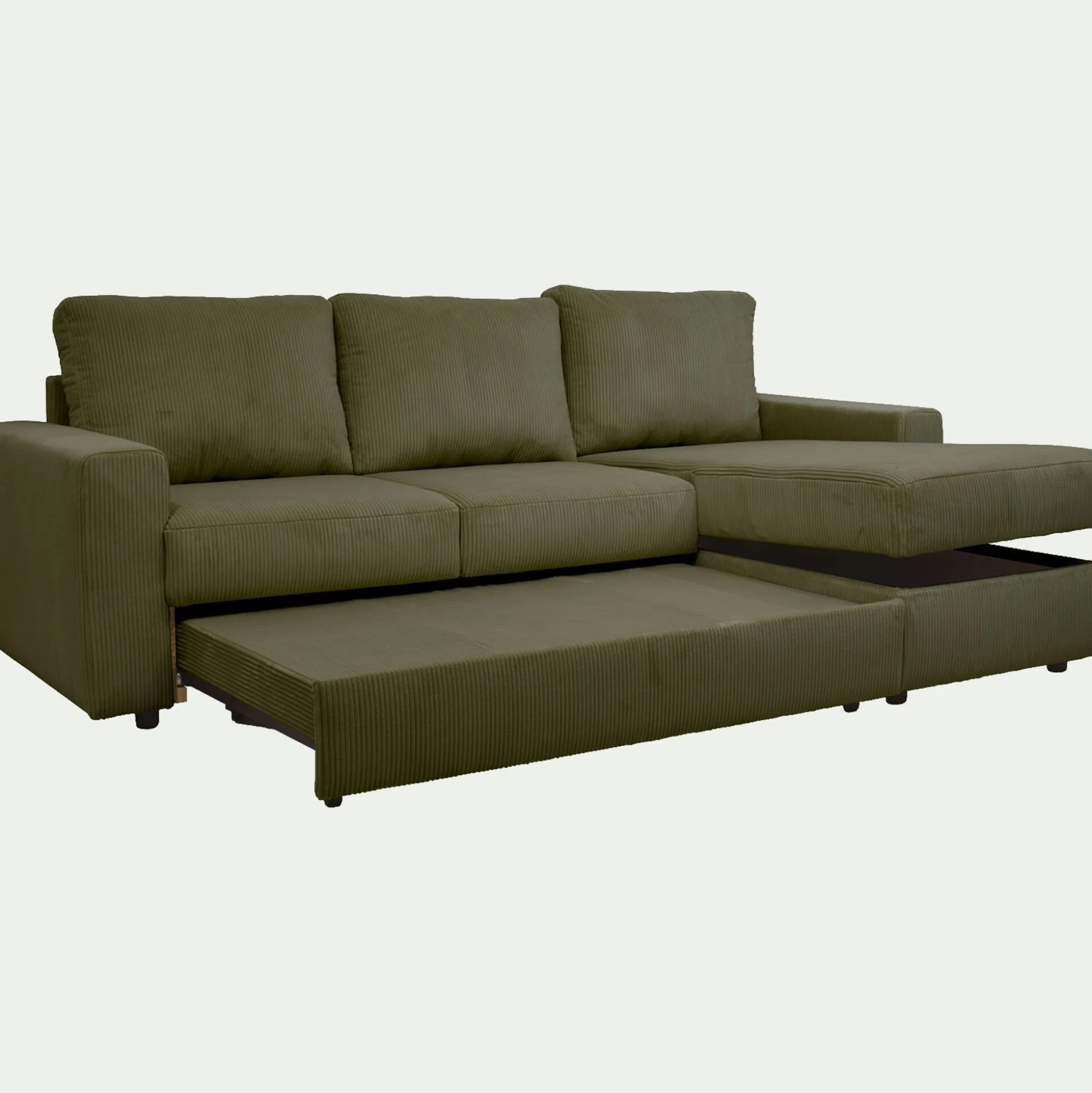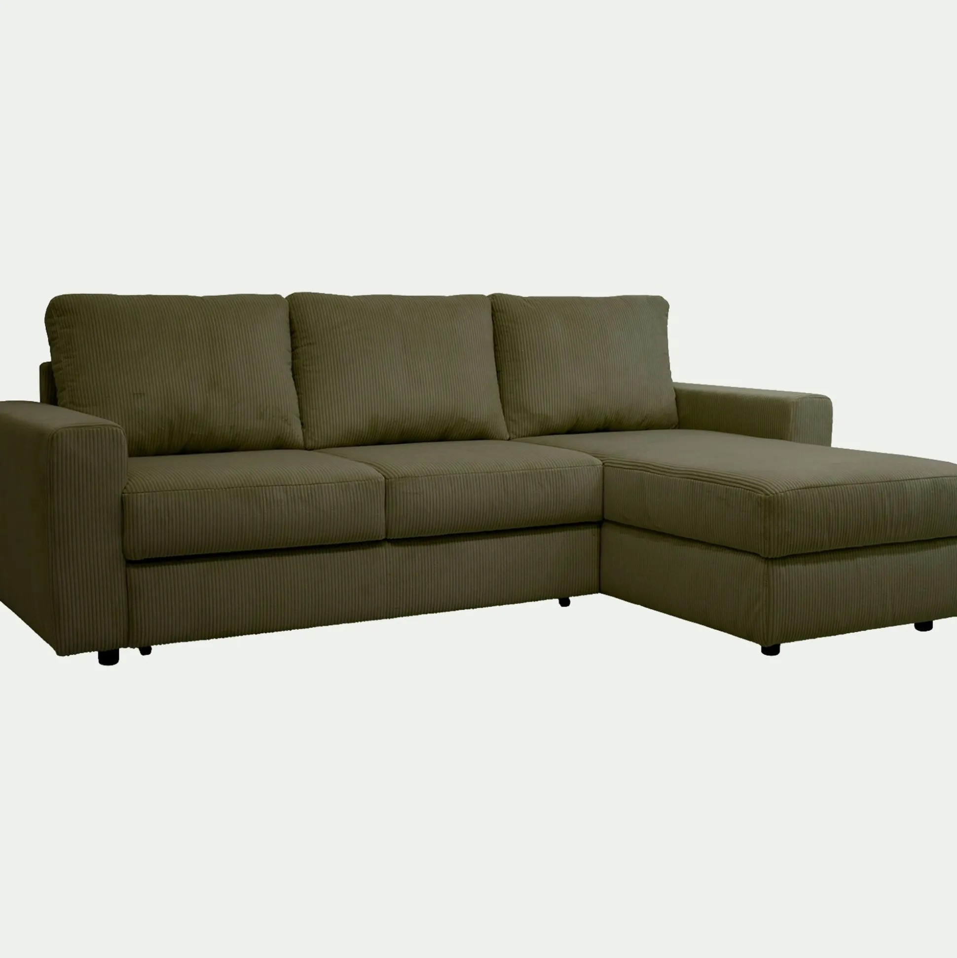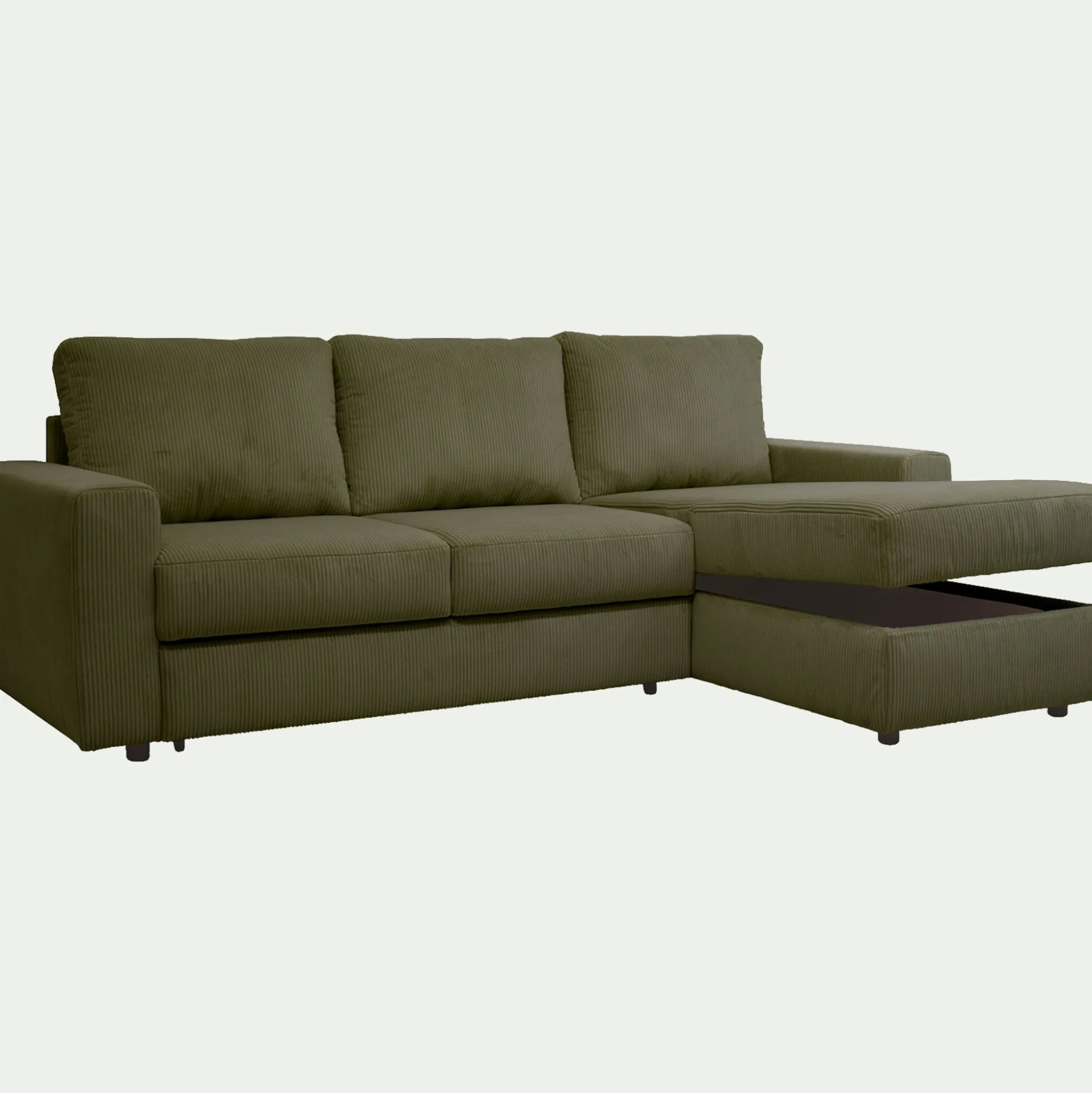 Canapé d’angle réversible convertible en velours côtelé – vert cèdre