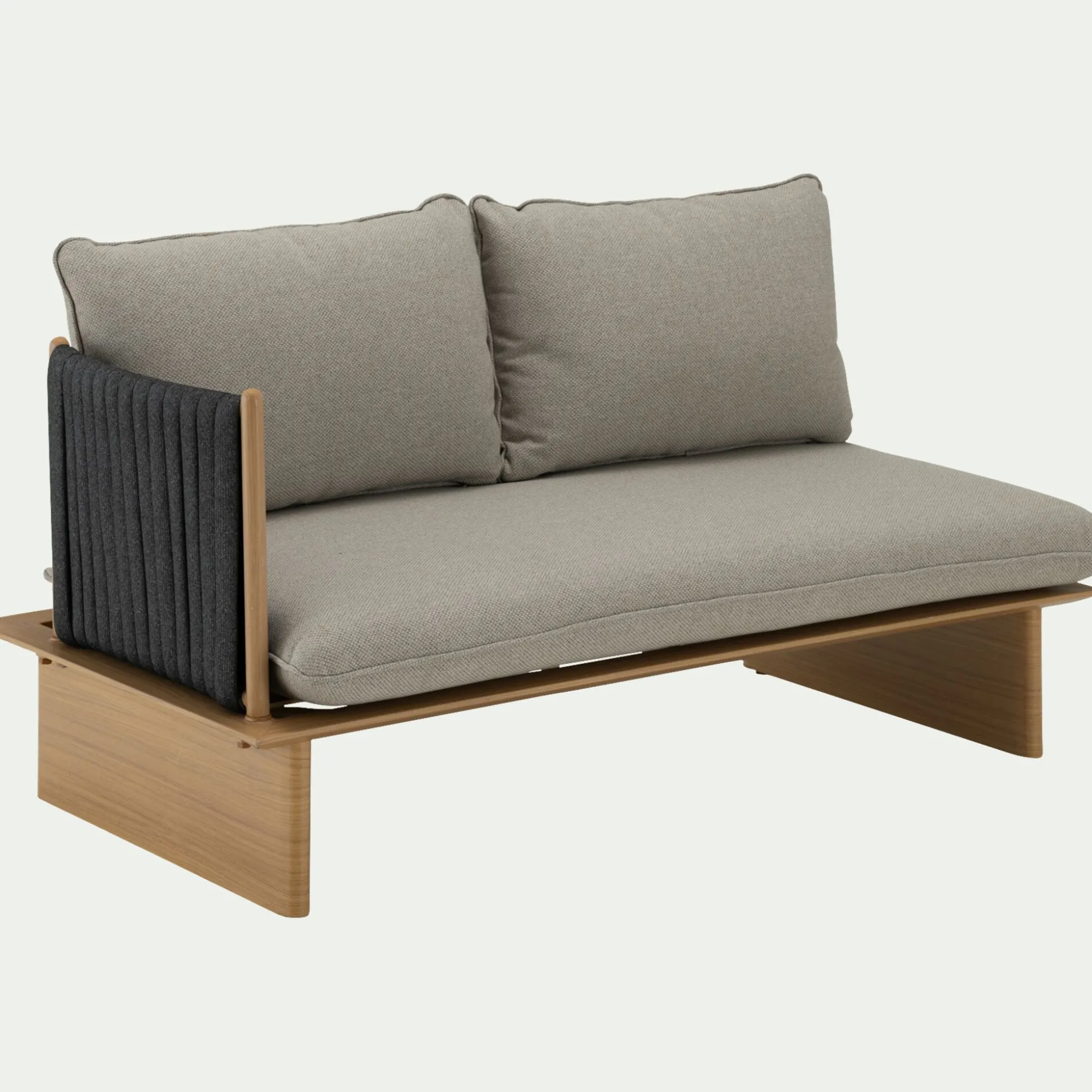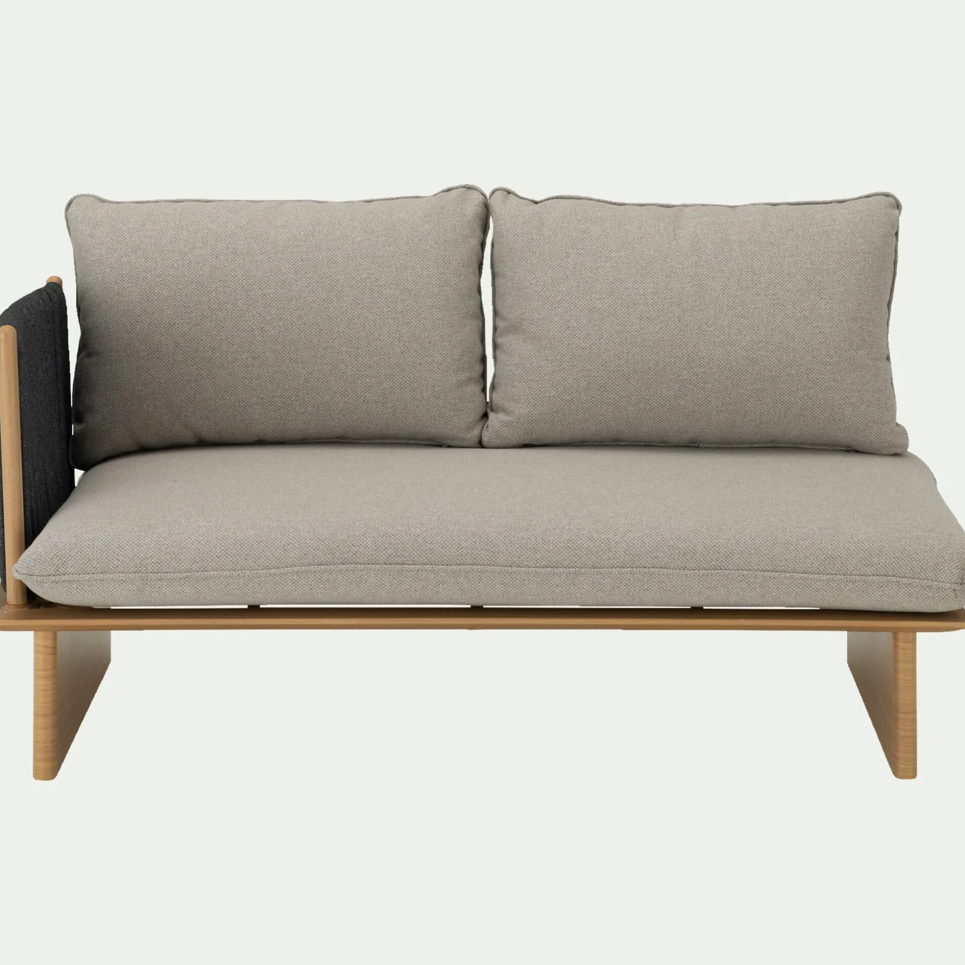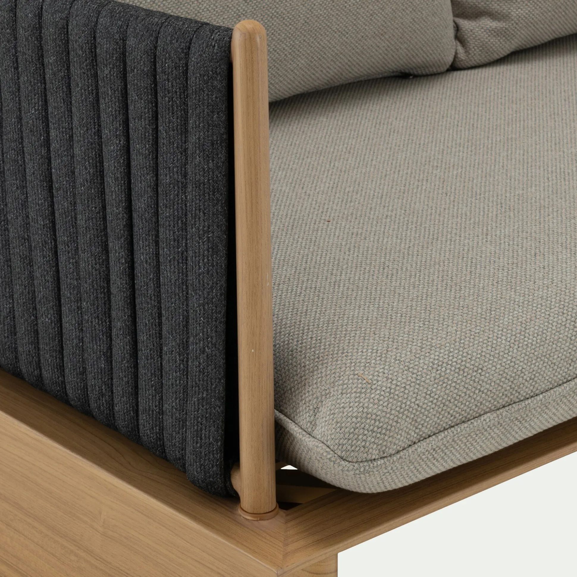 Avec son design mêlant lignes contemporaines et matières chaleureuses, la banquette d’extérieur Porto Cervo invite à la détente. Sa structure en métal finition bois recrée l’esthétique du teck tout en offrant robustesse et facilité d’entretien. Un accoudoir en corde noire vient sublimer son allure avec une touche graphique et raffinée. Pensé pour le bien-être, ce canapé 2 places est agrémenté de coussins gris clair, épais et moelleux, qui transforment chaque instant en un véritable moment de confort. Parfait pour lire un livre à l’ombre ou partager un apéritif sous le soleil, il trouve sa place aussi bien sur une terrasse que dans un coin du jardin.