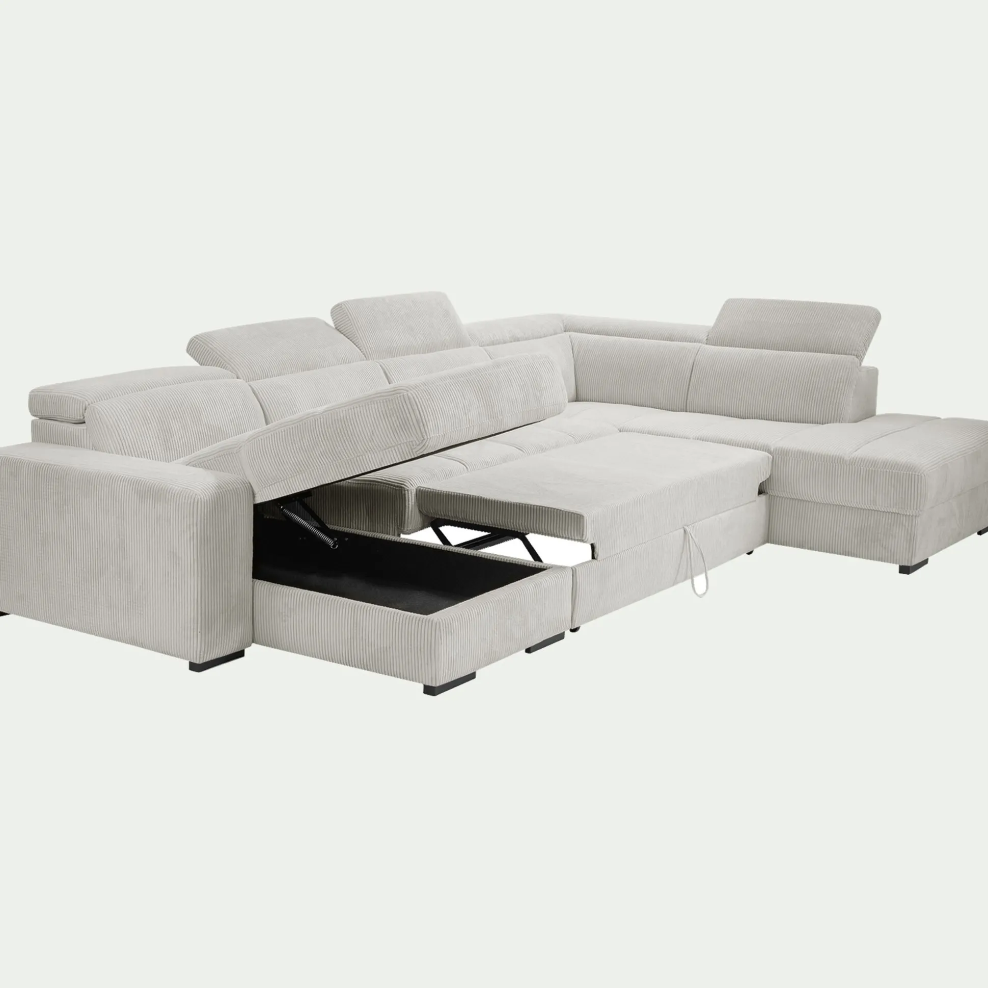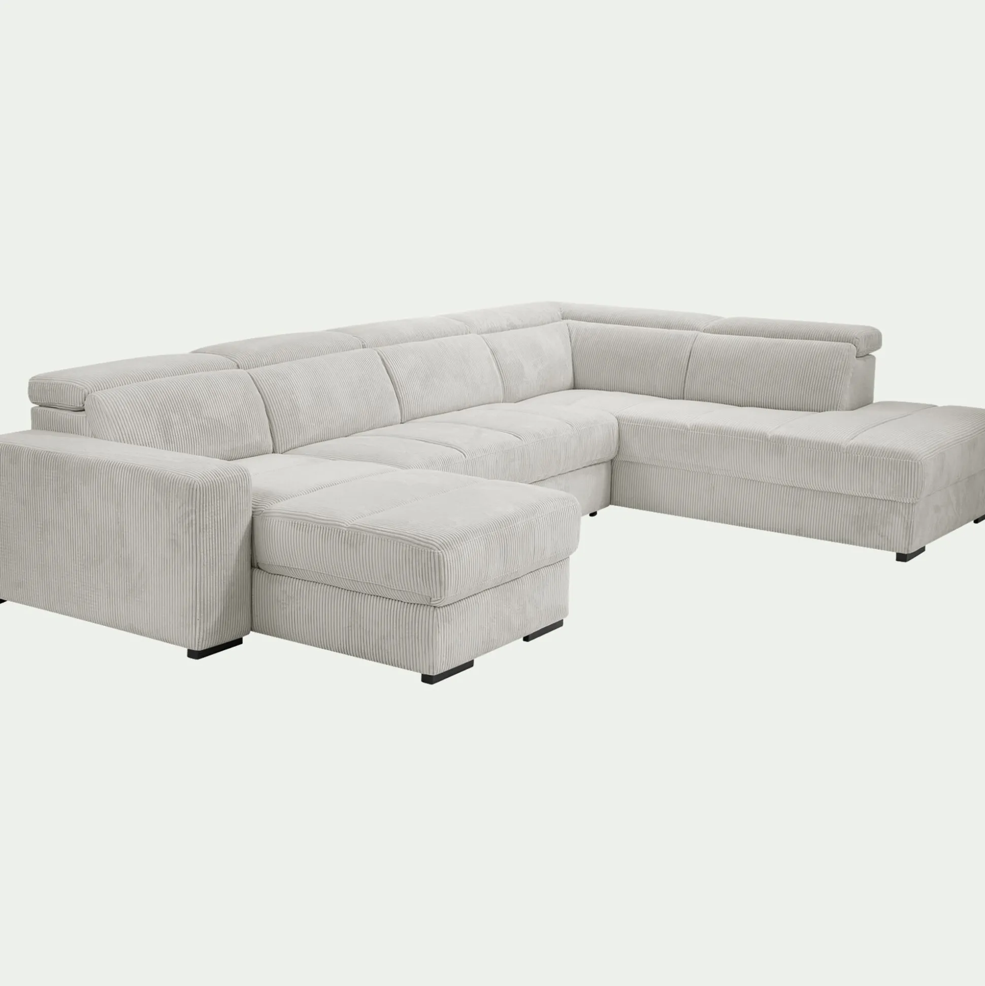 Canapé panoramique convertible avec méridienne droite en tissu castello – beige roucas