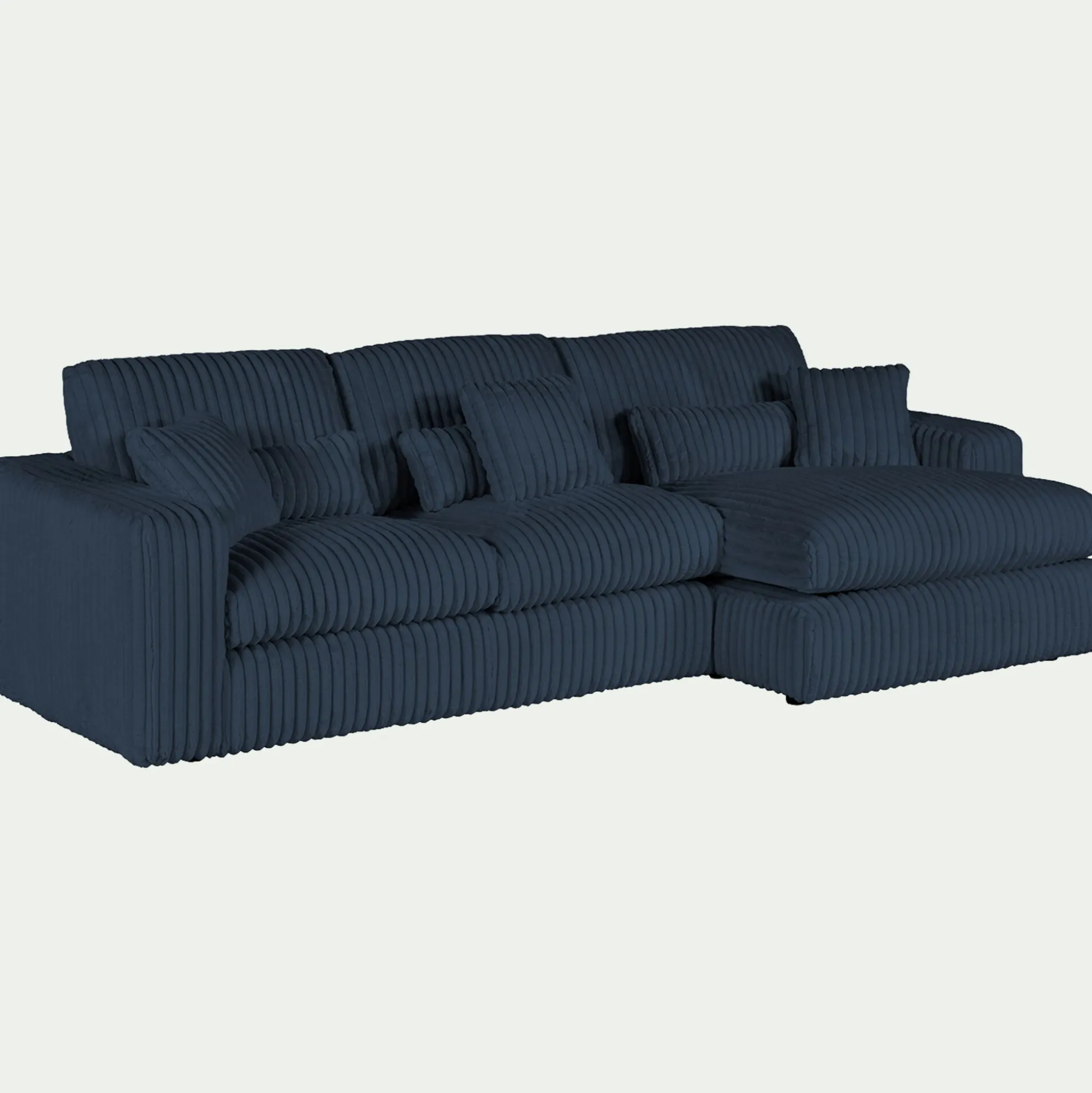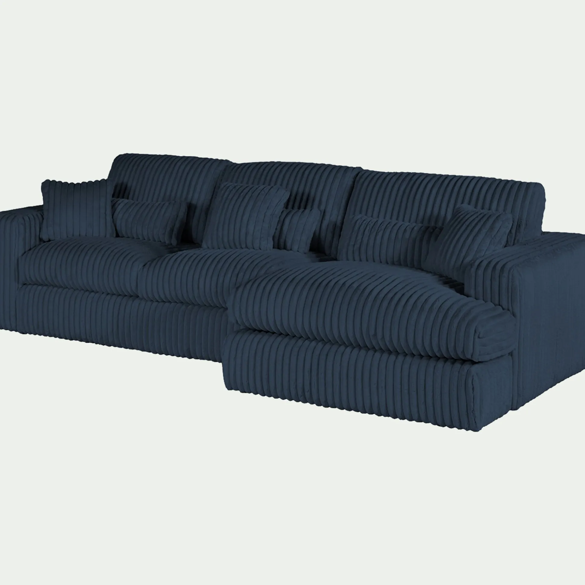 Découvrez le canapé Piuma, un concentré de douceur conçu pour votre salon. Son tissu côtelé 100% polyester bleu calabrun invite à la détente, tandis que sa structure solide en hêtre et panneaux de particules assure une belle durabilité. Les coussins déhoussables, garnis de mousse polyuréthane moelleuse et de ouate, vous promettent un confort hyper cocooning. Idéal pour les espaces plus intimes, ce canapé petit angle droit s’intègre avec charme et praticité pour créer une ambiance chaleureuse.