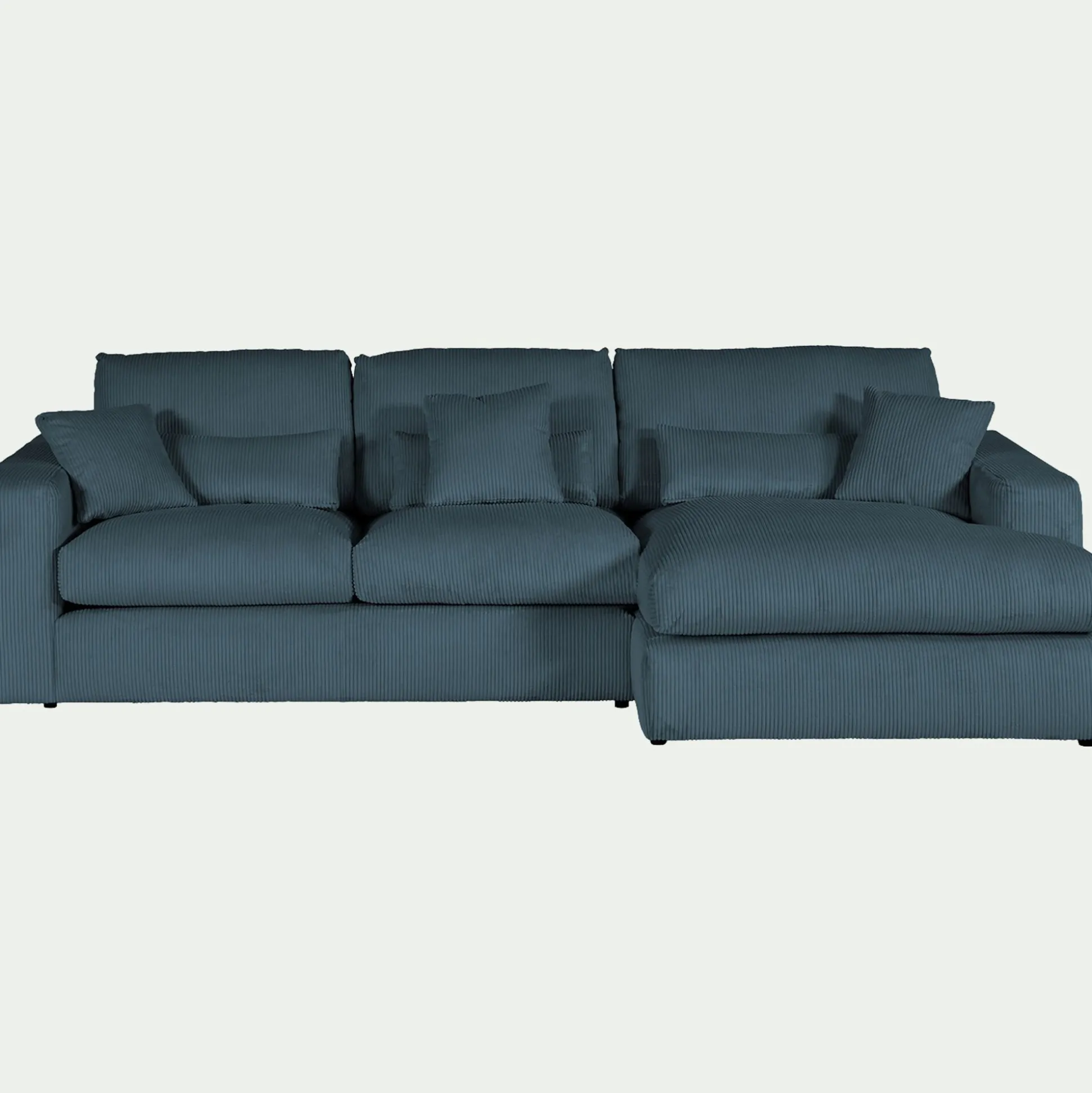 Avec son format 3 places et son angle à droite, ce canapé d’angle est une invitation aux moments partagés. Son revêtement en velours côtelé, à la fois doux et résistant, enveloppe l’espace d’une chaleur réconfortante. Son coloris bleu, intemporel, s’harmonise avec tous les styles d’intérieur. Pensé pour le confort, ce canapé fixe se compose d’une assise spacieuse, d’un dossier accueillant et de coussins déhoussables pour un entretien facilité. Six coussins décoratifs viennent parfaire l’ensemble, ajoutant une touche cosy. Un canapé idéal pour des instants de détente en famille ou entre amis.