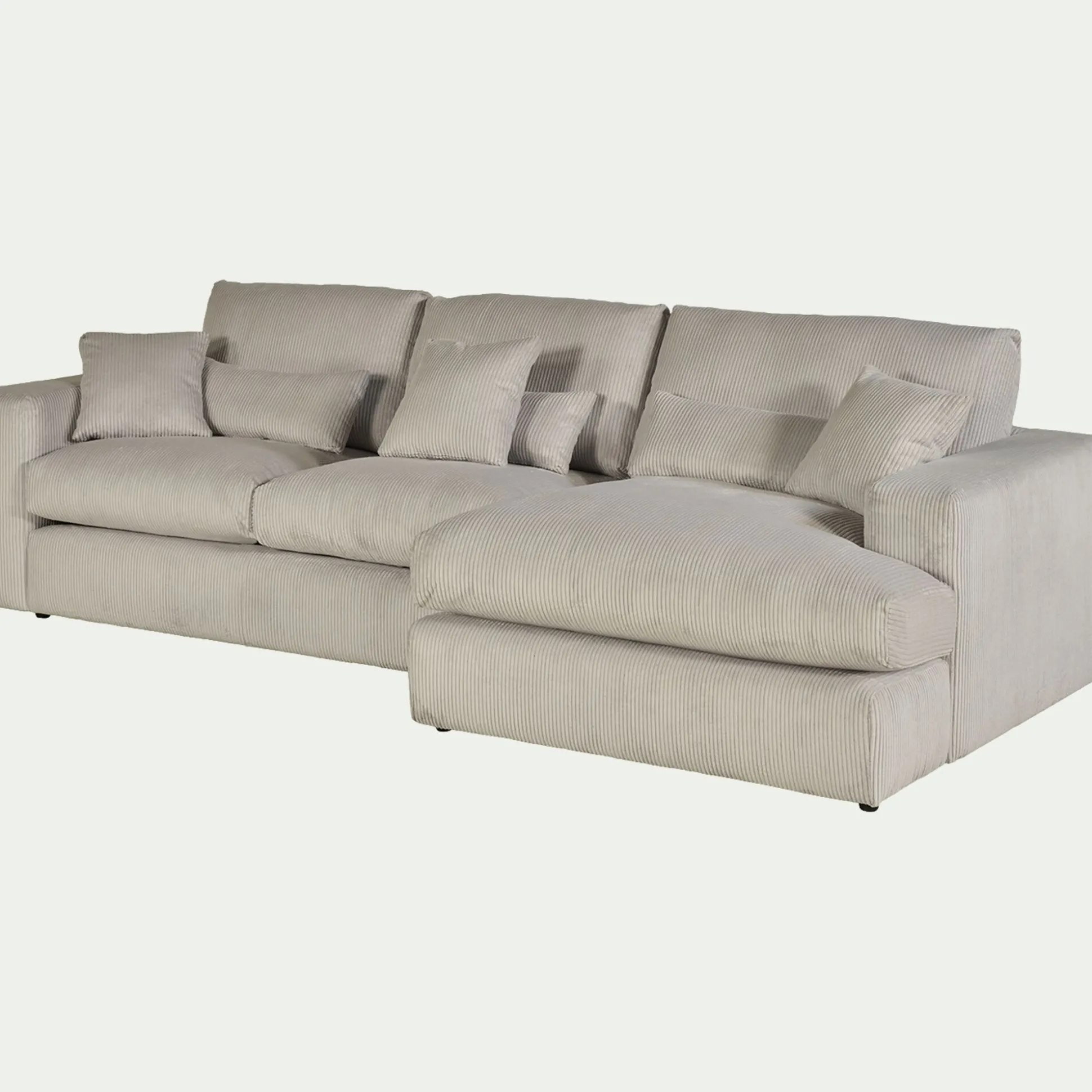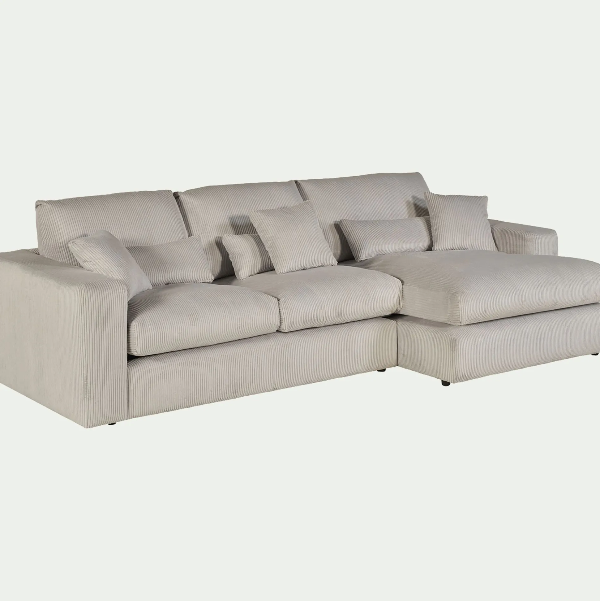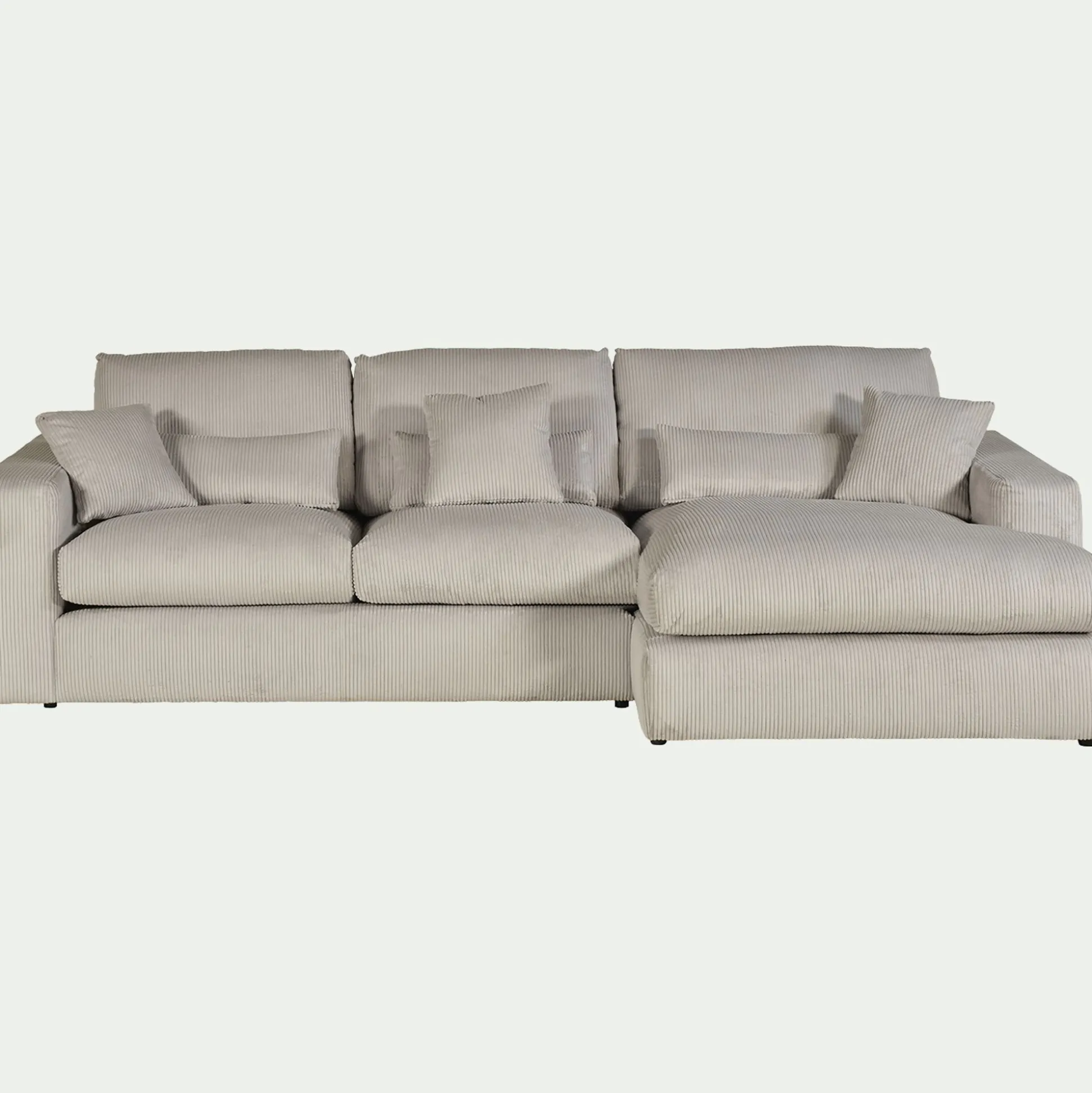 Avec son petit angle à droite, ce canapé d’angle est une invitation aux moments partagés. Son revêtement en velours côtelé, à la fois doux et résistant, enveloppe l’espace d’une chaleur réconfortante. Son coloris beige roucas, intemporel, s’harmonise avec tous les styles d’intérieur. Pensé pour le confort, ce canapé fixe se compose d’une assise spacieuse, d’un dossier accueillant et de coussins déhoussables pour un entretien facilité. Des coussins décoratifs viennent parfaire l’ensemble, ajoutant une touche cosy. Un canapé idéal pour des instants de détente en famille ou entre amis.